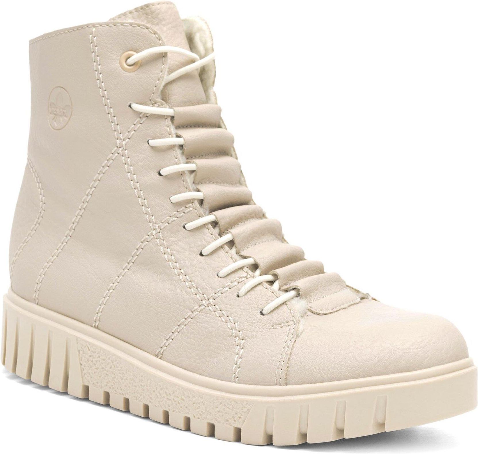 Szukasz wygodnych i stylowych butów na zimę? Trzewiki damskie marki Rieker to idealna propozycja dla Ciebie! Ich beżowy kolor łatwo dopasujesz do każdej stylizacji, a casualowy styl sprawi, że będą pasować zarówno do codziennych, jak i bardziej eleganckich outfitów. Wykonane z materiału syntetycznego, gwarantują komfort użytkowania i trwałość. Bez wątpienia warto postawić na te buty na nadchodzącą zimę! Od ponad stu lat marka Rieker oferuje niezwykle komfortowe i trwałe obuwie, które powstaje z myślą o zdrowiu stóp. Dzięki wieloletniemu doświadczeniu w produkcji obuwia, ta niemiecka marka doskonale potrafi łączyć wygodę ze stylem, dlatego w ofercie znajdziesz buty w modnych, oryginalnych fasonach, które każdemu przypadną do gustu. Buty Rieker tworzone są z materiałów wysokiej jakości, przez co odznaczają się wyjątkową elastycznością i trwałością, ale też lekkością. Ponadto w obuwiu stosuje się szerszą formę zapewniającą odpowiednią stabilizację stopy, specjalne podeszwy absorbujące wstrząsy oraz odciążające stawy i kręgosłup, a także wyjmowane wkładki z pianki Memory Foam, która idealnie dopasowuje się do kształtu stóp. To doskonałe produkty dla tych, którzy ponad wszystko cenią sobie komfort. Przekonaj się!