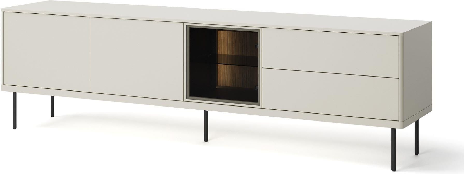 Szafka RTV EPIRO EP-07 – styl i funkcjonalność w doskonałej harmonii Szafka RTV EPIRO EP-07 to praktyczne i estetyczne rozwiązanie, które wprowadza do salonu nowoczesny design i wyjątkową funkcjonalność. Komfortowa strefa rozrywki EPIRO EP-07 została zaprojektowana z myślą o idealnym umiejscowieniu telewizora. Funkcjonalny układ sprawia, że sprzęt RTV znajdzie swoje miejsce podkreślając uporządkowaną i przytulną atmosferę salonu. Praktyczne przechowywanie Dzięki przestronnym półkom i szufladom, szafka RTV EPIRO EP-07 umożliwia wygodne przechowywanie kabli, pilotów i innych akcesoriów pomagając utrzymać porządek i harmonię w pomieszczeniu. Nowoczesny design i trwałość Czarne, metalowe nogi nadają meblowi wizualnej lekkości, a wykończenie w eleganckim kaszmirze podkreśla nowoczesny charakter. Szafka EPIRO EP-07 doskonale współgra z różnorodnymi aranżacjami od minimalistycznych po klasyczne, a solidna konstrukcja gwarantuje długie lata niezawodnego użytkowania.Produkt posiada wiele wariantów.