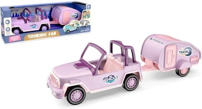 Zestaw pojazd terenowy z przyczepą kempingową. Samochód w pastelowych kolorach z doczepianą przyczepą w tym samym stylu. Zabawka działa na baterie AG13. Baterie znajdują się w zabawce. Produkt dla dzieci od 3 lat. Zapakowany w kartonowe pudełko. Podane wymiary są wymiarami opakowania. Wiek: …