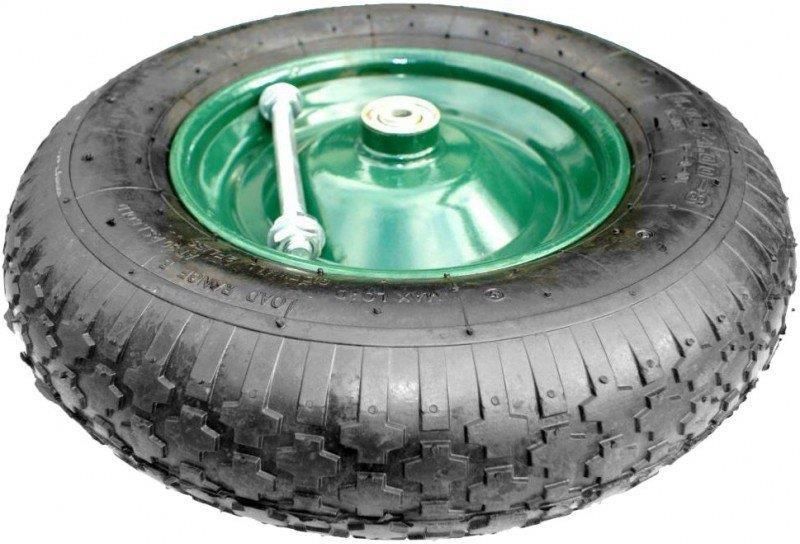 AWTOOLS KOŁO DO TACZKI PNEUMATYCZNE 400, FELGA METAL, ŁOŻYSKO+OŚ, 4 WARSTWY, 1,7 ATM Wykonane z trwałej, elastycznej gumy, bieżnikowane dla lepszej amortyzacji. Posiada 4-warstwową, antyprzecięciowa wkładkę z tkaniny. Felga wykonana z tłoczonej blachy stalowej malowanej proszkowo. Podwójne łożysko kulkowe. Idealne do transportu na nierównych powierzchniach. Pasuje do większości taczek dostępnych na rynku. DANE TECHNICZNE Rozmiar: 4,80/ 4,00-8/ 4PR Średnica: 400mm Szerokość: 95mm Max. obciążenie: 150kg Max. ciśnienie: 1,7bar Średnica felgi: 225mm Średnica osi: 150mm Waga: 3kg Zestaw zawiera 1x koło pneumatyczne 1x łożysko 1x oś