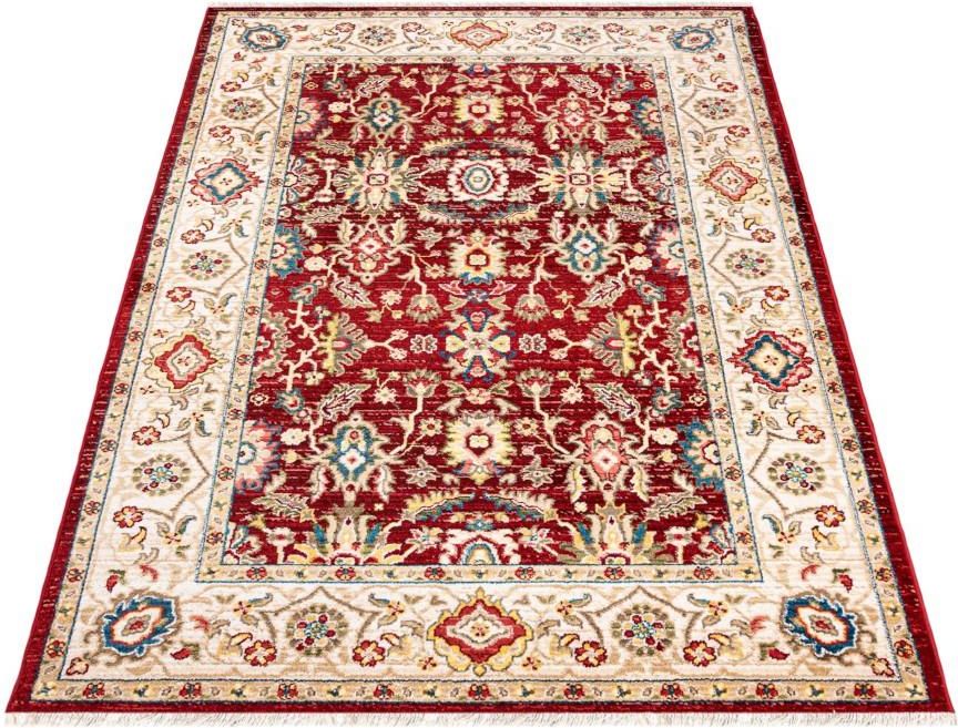 Dywan Rivo 00.58a red z kolekcji Rivo to prawdziwe dzieło sztuki, które przyciąga wzrok swoją intensywną, głęboką czerwoną barwą. Kolor ten dominuje na całej powierzchni dywanu, tworząc bogate tło dla misternie utkanych wzorów. Wzory te są pełne detali i różnorodności, z dodatkowymi kolorami takimi jak beż, kremowy, niebieski, zielony oraz subtelne odcienie żółci i brązu, które dodają dywanowi głębi i charakteru. Centralnym motywem dywanu jest medalion, otoczony przez symetryczne, roślinne ornamenty, które rozchodzą się promieniście na boki, tworząc harmonijną kompozycję. Brzegi dywanu zdobią delikatne, kwiatowe motywy, które kontrastują z centralnym, bardziejgeometrycznym wzorem, dodając całości elegancji. Kształt dywanu jest klasycznie prostokątny, co sprawia, że jest on uniwersalny i łatwy do wkomponowania w różne przestrzenie. Dywan posiada frędzle na krótszych bokach, które dodają mu tradycyjnego, rękodzielniczego charakteru. Inspiracją do urządzenia wnętrza z tym dywanem może być stworzenie przestrzeni o orientalnym charakterze. Wyobraź sobie salon z meblami w stylu retro, z drewnianymi elementami i miękkimi, welurowymi poduszkami w kolorach ziemi. Dywan Rivo 00.58a red może leżeć w centralnym miejscu, przyciągając uwagę i tworząc ciepłą, przytulną atmosferę. Można go również połączyć z nowoczesnymi, minimalistycznymi meblami, gdzie jego bogactwo wzorów będzie kontrastować z prostotą otoczenia, dodając wnętrzu wyrazistości i głębi. Jeśli szukasz dywanu, który nie tylko ozdobi Twoje wnętrze, ale również stanie się jego centralnym punktem, Dywan Rivo 00.58a red jest idealnym wyborem. Spodoba się osobom ceniącym tradycyjne rzemiosło, miłośnikom sztuki i designu, a także tym, którzy chcą dodać swojej przestrzeni odrobinę luksusu i egzotyki. Jego uniwersalność sprawia, że pasuje zarówno do klasycznych, jak i nowoczesnych wnętrz, czyniąc go doskonałym wyborem dla każdego, kto ceni piękno i jakość. Kolekcja dywanów RIVO to propozycja dla lubiących nowoczesność oraz tradycję. Dywany te zostały wykonane z najwyższej jakości przędz polipropylen + bawełna. Dywany te wyróżniają się przede wszystkim bardzo wysoką odpornością na ścieranie, ich włókna są sprężyste, a także odporne na odkształcenia. Są bardzo łatwe do czyszczenia, w tym do odkurzania i do prania na mokro z użyciem szamponów. Posiadają też wysoki współczynnik przewodnictwa cieplnego, dlatego mogą być używane w pokojach z ogrzewaniem podłogowym. W kolekcji dywanów RIVO znajduje się szeroka gama nowoczesnych i tradycyjnych wzorów, w rożnych wariantach rozmiarowych.