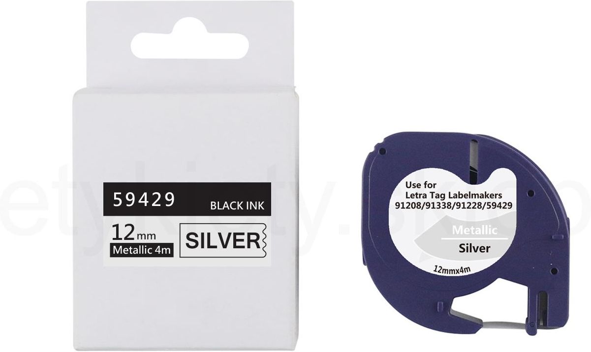 Etykiety.Sklep Taśma Do Dymo Letra Tag 59429 12Mm 4M Srebrna Taśma, Czarny Napis Metaliczna Prusice