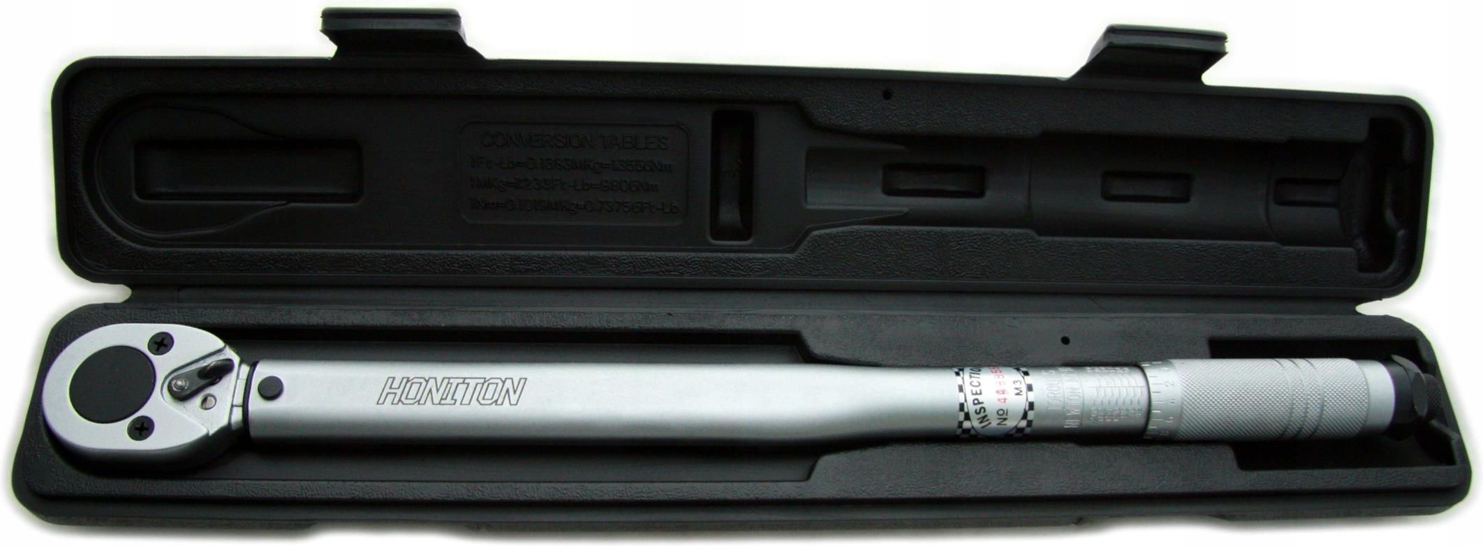 Przedmiotem sprzedaży jest Klucz dynamometryczny firmy HONITON Klucz posiada szeroki zakres od 42 do 210 Nm siły dokręcania i odkręcania śrub. Produkt wykonany z wysokiej jakości materiałów. Regulacja Prawo/Lewo precyzyjna skala blokada ustawienia. Do klucza dołączone jest świadectwo kalibracji wykonane na certyfikowanym przyrządzie pomiarowym. mechanizm zapadkowy z 24 zębami Charakterystyka: Długość całkowita : 460 mm Mocowanie: 1/2" Regulacja obrotów: prawo / lewo Waga klucza:0,55 kg Zakres regulacji: 42- 210 Nm ( niutonometrów ) Stal chromowo – wanadowa Precyzyjna skala Firma Honiton powstała w 1979 roku. Jest liderem wśród światowych producentów narzędzi ręcznych i specjalizuje się w produkcji kluczy, kompletów główek nasadowych oraz innych narzędzi ręcznych. W 2004 roku firma Honiton opracowała i opatentowała linię produktów „HONIDRIVER”, która zawiera zestaw nasadek oraz kluczy zapadkowych. Każdy produkt jest certyfikowany zgodnie z kodem DIN i zyskał uznanie na całym świecie. Honiton zawsze stara się podążać za trendami w produkcji narzędzi ręcznych i rozwija coraz to nowsze produkty. Produkty przechodzą rygorystyczną kontrolę dla maksymalnej satysfakcji klienta. Innowacyjność i rozwój produktów dla firmy Honiton jest ważna! Jeśli szukasz wiarygodności i silnego producenta narzędzi ręcznych, Honiton to najlepszy dla Ciebie wybór. Pozdrawiamy i zapraszamy do dalszych zakupów