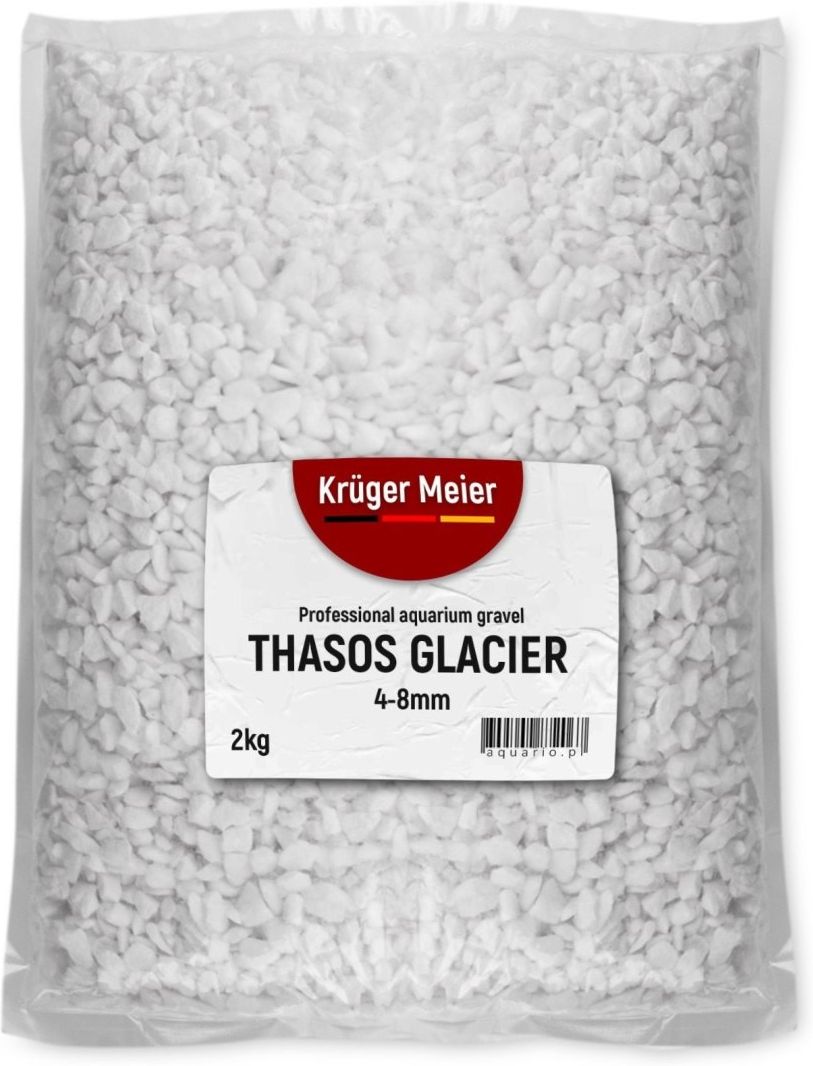 Kruger Meier Thasos Glacier to wysokiej jakości żwirek o granulacji 8-16 mm, wykonany z jasnego, naturalnego kamienia. Idealnie nadaje się do większych akwariów, zbiorników dekoracyjnych oraz jako element kontrastujący z ciemniejszym tłem czy roślinnością. Żwirek jest chemicznie obojętny i w pełni bezpieczny dla ryb, krewetek i roślin wodnych. Dzięki dużej frakcji dobrze sprawdza się jako warstwa dekoracyjna lub element strukturalny w kompozycjach aquascapingowych. Najważniejsze cechy Frakcja: 4-8 mm Waga: 2 kg Intensywnie biały, naturalny kamień dekoracyjny Bezpieczny dla zwierząt i roślin akwariowych Nie wpływa na parametry wody Świetny do większych akwariów i aranżacji dekoracyjnych UWAGA! Produkt został wstępnie wypłukany, jednak zalecamy dodatkowe przepłukanie przed użyciem w akwarium.