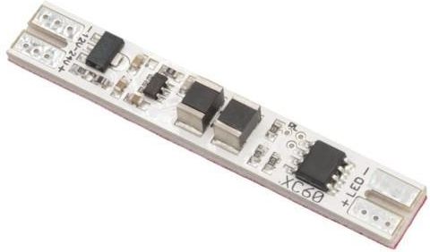 Włącznik dotykowy do listwy Led model WPL09 Dotykowy włącznik do włączania taśmy Led w profilu ledowym. Włącznik do montażu w listwie Led pod kloszem. Włącznik do włączania i wyłączania taśmy Led w profilu Led płytkim. Włącznik montowany w listwie Led pod kloszem. Włącznik o mocy 5A obsługuje taśmy Led na napięcie 12V i na 24V. Uwaga, włącznik WPL09 jest komponentem elektronicznym który wymaga odpowiedniego przylutowania włącznika do instalacji oświetleniowej. W związku z czym lutowanie oraz montaż włącznika powinna wykonać osoba z doświadczeniem w lutowaniu elementów elektronicznych. Ze względu na rozmiar włącznika i układ elektroniczny w przypadku braku doświadczenia w lutowaniu układów elektronicznych można łatwo uszkodzić tego typu włącznik ledowy. Podstawowe zalety włącznika Led: niewielkie rozmiary umożliwiające montaż włącznika w listwie Led, wysoka jakość wykonania, dioda do podświetlania włącznika, obsługa taśm na 12V, łatwość obsługi włączania i wyłączania ledów w profilu. Podstawowe zastosowanie włącznika Led: oświetlenie Led pod szafkami, oświetlenie Led pod półkami, listwa Led do oświetlenia biurka, oświetlenie Led w meblach, Podstawowe parametry techniczne włącznika Led: moc znamionowa: 5A, napięcie zasilania: DC12V / DC24V maksymalne bezpieczne obciążenie włącznika dla 12V: 48 Watt, maksymalne bezpieczne obciążenie włącznika dla 24V: 96 Watt, sposób załączania: dotykowy, funkcja ściemniania: brak, sposób łączenia: połączenia lutownicze z przewodami zasilania, oraz z przewodami do Led, wysokość wnęki montażowej w profilu Led (mm): 5mm-9mm, szerokość wnęki montażowej w profilu Led (mm): ⩾11mm, wymiary włącznika (dł. x szer. x wys.): 50mm x 9mm x 5mm