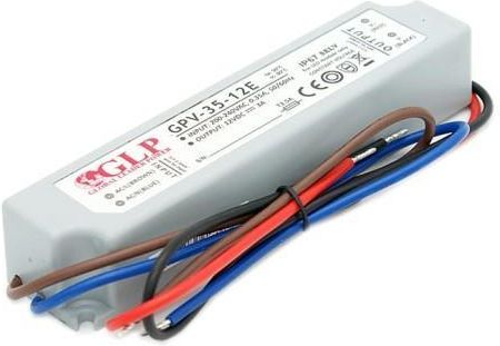 Zasilacz hermetyczny do LED IP67, marki GLP o mocy 35 Watt na napięcie DC 24 Volt. Model zasilacza GLP GPV-35-24, to wysokiej jakości wodoodporny zasilacz do LED w szczelnej hermetycznej obudowie klasy IP67, która gwarantująca odporność na zachlapania wodą, wilgoć oraz odporność na kurz i pył. Zasilacz LED GLP GPV-35-24 o mocy 35W na 24V, można stosować do miejsc o podwyższonej wilgotności lub do miejsc narażonych na kontakt na wodą, sprawdzi się również jako profesjonalny zasilacz ledowy do instalacji na zewnątrz. Dzięki swojej pyłoszczelnej konstrukcji, zasilacz ten doskonale sprawdzi się w środowiskach o dużym zapyleniu lub zakurzeniu. Obudowa klasy IP67 chroni urządzenie przed kurzem i wilgocią, podczas gdy zasilacz zapewnia cichą pracę. Dzięki szczelnej obudowie IP65, zasilacz współpracujący ze ściemniaczami LED PWM nie wydaje żadnych dźwięków podczas ściemniania, co eliminuje drgania cewek i kondensatorów. Zasilacz do taśmy LED powinien mieć to samo napięcie (V) co taśma oraz około 20% zapasu mocy (W), aby nie pracował na maksymalnym obciążeniu (większa awaryjność i krótsza żywotność instalacji). Nie wiesz, jak dobrać zasilacz? Przeczytasz o tym tu: zasilacze do LED. Podstawowe zalety zasilacza: zamknięta hermetyczna obudowa zasilacza, szczelna wodoodporna obudowa zasilacza IP67, obudowa zasilacza odporna na zachlapania wodą, obudowa zasilacza odporna na kurz i pył, obudowa zasilacza odporna na wilgoć, profesjonalny zasilacz ledowy o wydłużonym okresie gwarancji, zasilacz z przewodami do podłączenia ledów 24V, zasilacz z przewodami do podłączenia do prądu AC 230V. Podstawowe zastosowanie zasilacza: zasilacz do ledów w łazience, zasilacze do oświetlenia led w pergoli, altanie na zewnątrz, zasilacz do oświetlenia ledowego w podbitce i elewacji, zasilacz do miejsc i pomieszczeń o dużej wilgotności, zasilacz do miejsc o dużym zapyleniu. Podstawowe parametry zasilacza: napięcie znamionowe na wyjściu: DC24V, moc znamionowa: 35 Watt, znamionowe obciążenie prądowe: 1.45A, sprawność zasilacza: ⩾84%, maksymalne bezpieczne obciążenie dla zasilacza: 30 Watt, napięcie zasilania na wejściu: AC 90V-264V, częstotliwość napięcia zasilania: 47Hz-63Hz, zabezpieczenie przeciążeniowe: tak, zabezpieczenie zwarciowe: tak, zabezpieczenie przepięciowe: tak, klasa ochronności: II, klasa szczelności: IP67, chłodzenie zasilacza: pasywne, obudowa zasilacza: hermetyczna plastikowa ABS, długość przewodów przyłączeniowych: 180mm wymiary zewnętrzne zasilacza (dł. x szer. x wys.): 140mm x 32mm x 28mm
