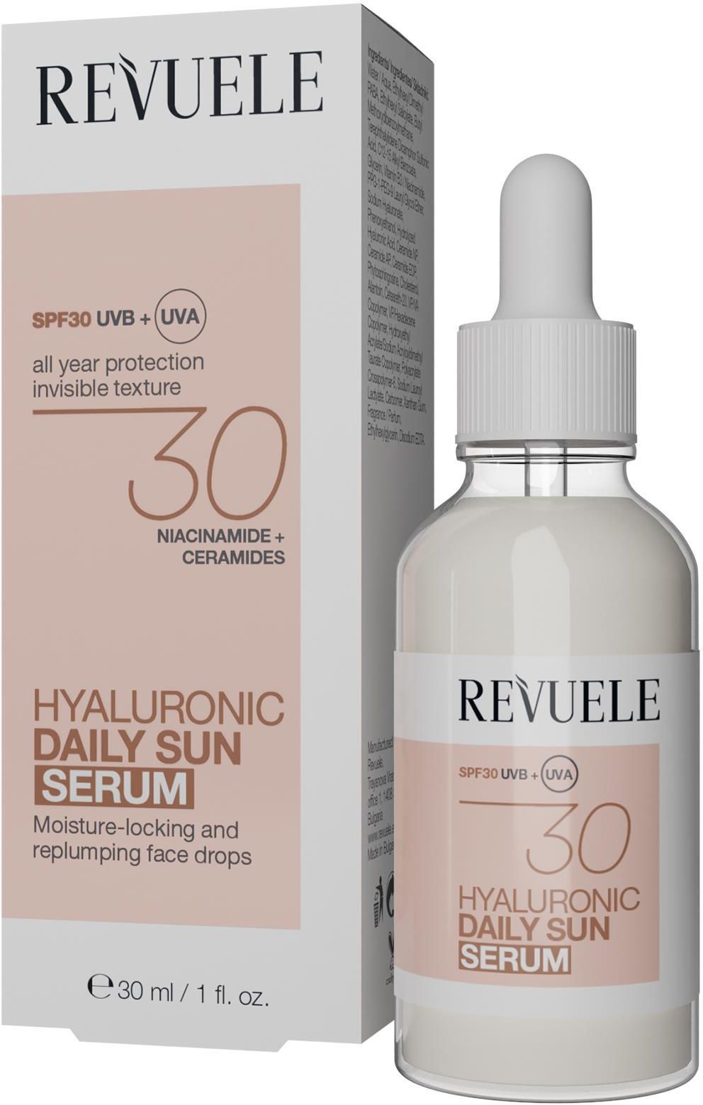 Revuele Daily Sun Hyaluronic Sun Serum SPF 30, 30 ml, Ochrona przed promieniowaniem słonecznym dla kobiet, Chroń skórę przed przedwczesnym starzeniem się oraz innymi uszkodzeniami spowodowanymi działaniem promieni słonecznych. Delikatna skóra twarzy jest znacznie bardziej wrażliwa niż skóra na …