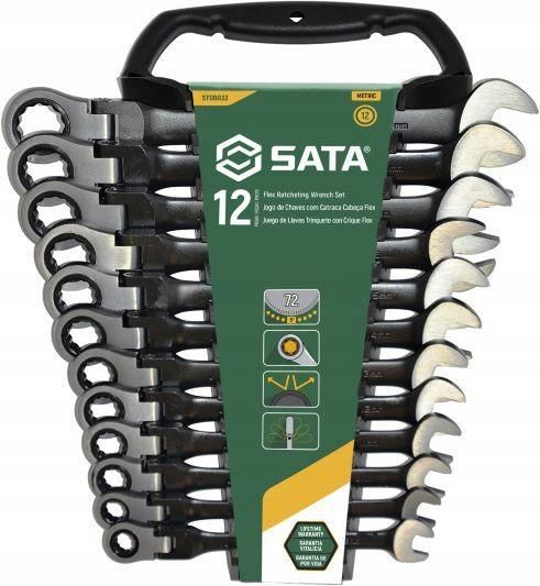 Dlaczego warto wybrać markę SATA? W 1998 roku została utworzona firma SATA przez amerykańską grupę DANAHER TOOL GROUP w Szanghaju. Charakteryzuje się ona wysoką jakością wykonania i zastosowanych materiałów narzędzi ręcznych za atrakcyjną cenę. Firma SATA jako jedna z pierwszych w tej branży udzieliła dożywotniej gwarancji na swoje narzędzia ręczne, co niewątpliwie świadczy o wysokiej jakości i trwałości narzędzi. Podczas produkcji narzędzi prowadzona jest bardzo wnikliwa kontrola jakości o czym świadczy także spełnienie normy ISO 9002. Wszystkie narzędzia SATA spełniają amerykańskie normy ANSI i niemieckie DIN. Opis produktu: ZESTAW 12 KLUCZY PŁASKO-OCZKOWYCH ŁAMANYCH Z GRZECHOTKĄ NA PANELU SERIA BLACK Łamana część oczkowa klucza ułatwia pracę w trudno dostępnych miejscach Klucze wykonane są z wysokojakościowej stali chromowo-wanadowej (Cr-V), wykończone czarnym tlenkiem, dzięki czemu są zabezpieczone są przed korozją i bardzo trwałe Oczko połączone z grzechotką GEARWRENCH® posiada niewielką średnicę, co pozwala na szybszą i efektywniejszą pracę, szczególnie w ciasnych i trudno dostępnych miejscach, gdzie tradycyjna grzechotka z nasadką nie mieszczą się Grzechotka GEARWRENCH® o skoku 5 stopni – zwykła grzechotka wymaga skoku 30 stopni lub 6 razy większej powierzchni Mechanizm zębatkowy w grzechotce wykonany jest ze stali hartowanej Mechanizm zębatkowy w części oczkowej posiada 72 zęby Grzechotki GEARWRENCH® składają się tylko z jednej obręczy idealnie dopasowanej do oczka. Dzięki takiej budowie narzędzia są mniej podatne na gromadzenie się zabrudzeń w oczku grzechotki, co wpływa na przedłużenie żywotności klucza Klucze wyprodukowano w oparciu o najwyższe standardy dzięki czemu spełniają one oczekiwania użytkowników na całym świecie Wymiary kluczy SATA są zgodne z amerykańską norma ASIN i niemiecką DIN W zestawie: Zestaw ten zawiera 12 kluczy płasko-oczkowych z grzechotką GEARWRENCH® w rozmiarach: 8, 9, 10, 11, 12, 13, 14, 15, 16, 17, 18, 19 mm