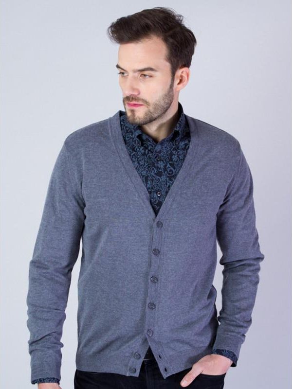 Sweter rozpinany bawełniany męski z kolekcji Wiosna - Lato 2017. Kolor: szary Typ: rozpinany (cardigan) Skład: 50% bawełna, 50% akryl Jakość: pierwsza Gwarancja: 24 m-ce Uszyty w Polsce