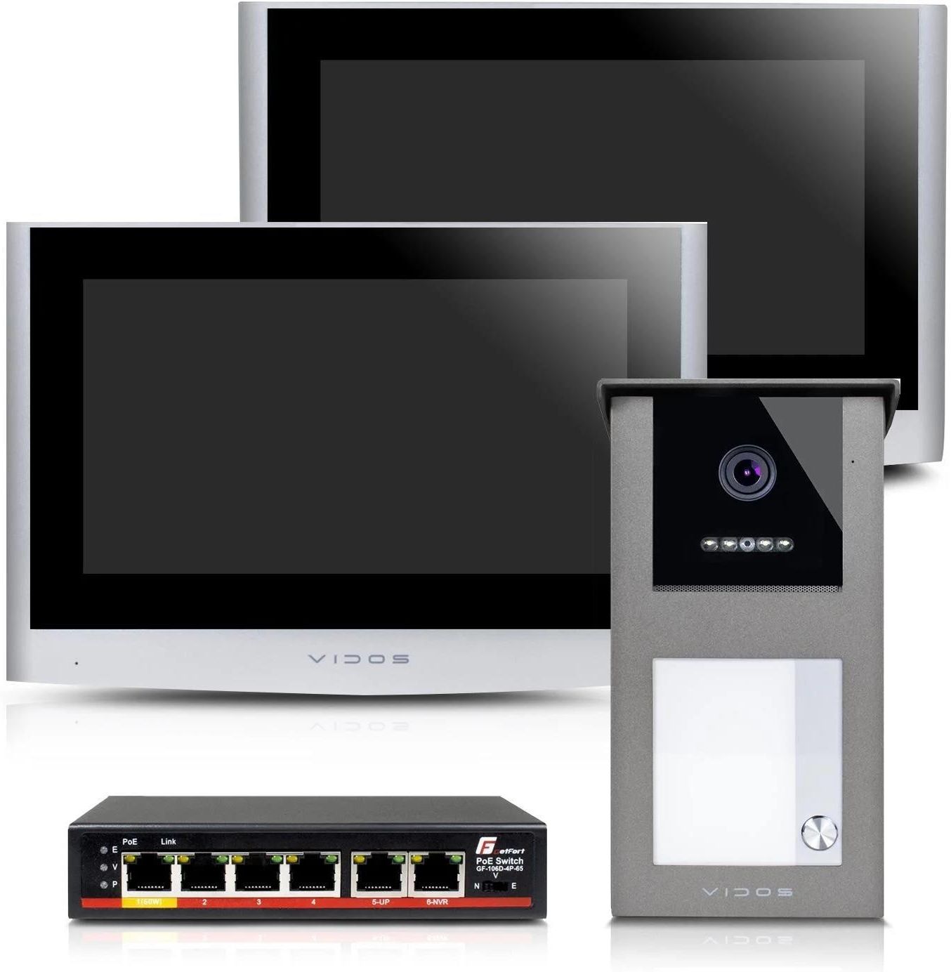 Wideodomofon VIDOS IPX S101-2/M100-X Panel zewnętrzny VIDOS IPX S101-1 System IPX Kamera CMOS Full HD Kąt widzenia 125° Podświetlenie nocne LED Wandaloodporna obudowa ze stopu aluminium Wbudowany czytnik RFID - MIFARE 13.56MHz Podświetlany szyld / tabliczka informacyjna Klasa szczelności: IP54 Instalacja: UTP Zasilanie PoE 802.3af lub DC 12V Wymiary: 176 x 90 x 28 mm (z daszkiem 181x96x43 mm) Monitor wideodomofonu VIDOS IPX M100-X 7-calowy ekran dotykowy Rozdzielczość 1024X600px Wbudowana karta WiFi umożliwiająca współpracę z aplikacją mobilną Vidos X System operacyjny Linux Obsługa 8 wejść alarmowych i 1 wyjścia alarmowego Sterowanie alarmem przez aplikację mobilną Sterowanie dwoma wejściami (np. furtką i bramą automatyczną) Wewnętrzna pamięć flash (100 zdjęć) oraz obsługa karty pamięci microSD do 128GB Interkom wewnętrzny i zewnętrzny Obsługa kamery IP i kamery WiFi z protokołem ONVIF o maksymalnej rozdzielczości 1080P Kompatybilność z urządzeniami SIP 2.0 Zasilanie: PoE 802.3af lub DC 12V Wymiary: 210 x 142 x 17 mm (głębokość bez ramki) SWITCH POE GETFORT 4FE x POE + 2FE UPLINK 65W 6 portów 100Mbps RJ45 4 porty PoE 802.3 af/at 1 port 802.3bt (60W) Obsługo PoE do 30W na port Zasilacz 52V/65W Tryb Long range PoE, do 250m Obsługa izolacji portów VLAN W skład zestawu wchodzi 1 x SWITCH POE GETFORT 4FE x POE + 2FE UPLINK 65W 20045 2 x Monitor wideodomofonu VIDOS IPX M100-X 49533 1 x Panel zewnętrzny VIDOS IPX S101-1 48495