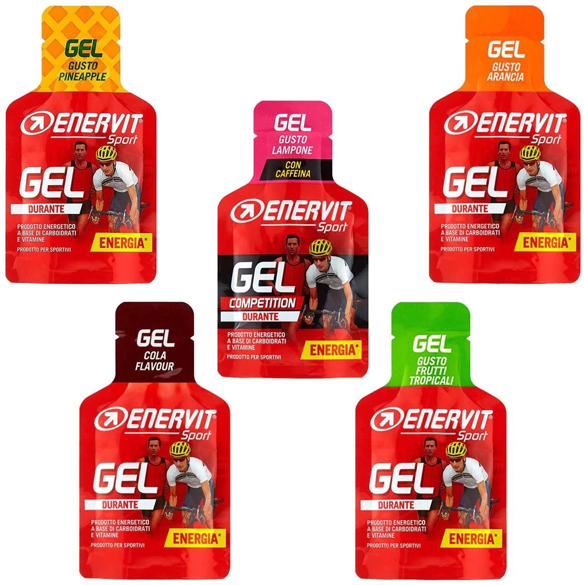 Zestaw 5 opakowań żelu energetycznego w różnych smakach, każda o gramaturze 25 ml. Żele Enervit Sport dzięki wysokiej zawartości węglowodanów są źródłem szybkiej energii wymaganej podczas sportów wytrzymałościowych. Sprawdzą się nie tylko dla sportowców, ale także podczas dłuższych wypraw górskich, biwakowania i wszelkich prac w terenie.