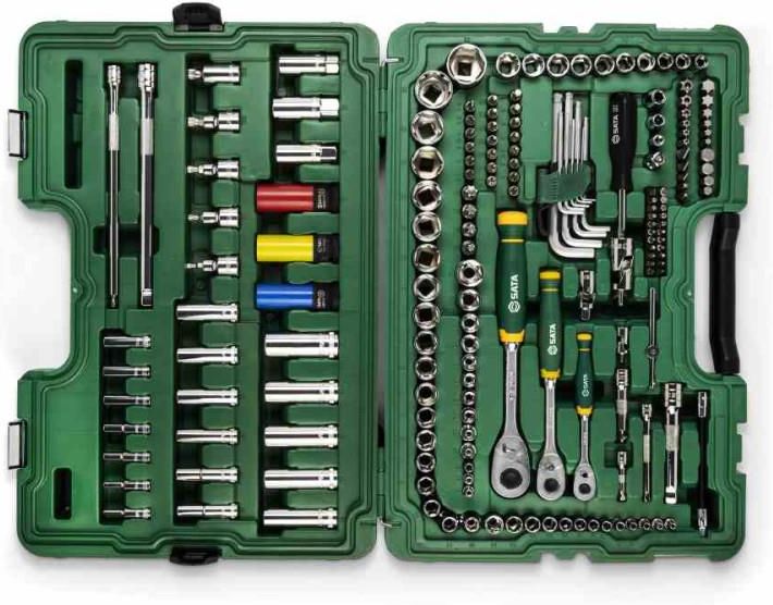 Zestaw kluczy nasadowych SATA 180 elementów 1/4" 3/8" 1/2" Zestawy narzędziowe to niezbędny element wyposażenia każdego majsterkowicza, zarówno profesjonalisty, jak i amatora. Oferują one wszechstronność i możliwość wykonywania różnorodnych prac, od drobnych napraw w domu po bardziej skomplikowane zadania warsztatowe. Decydując się na zakup zestawu kluczy nasadowych, warto zwrócić uwagę na kluczowe cechy, takie jak liczba elementów, typ narzędzi oraz materiał ich wykonania. W przypadku zestawu kluczy nasadowych SATA o liczbie 180 elementów, użytkownicy mają pewność, że znajdą w nim narzędzia potrzebne do wielu zastosowań. Dodatkowo, zestaw ten jest dostarczany w praktycznej walizce, co ułatwia przechowywanie i transport. Typ narzędzi w zestawie Zestaw kluczy nasadowych to kompleksowa kolekcja narzędzi, która zawiera wszystko, co niezbędne do codziennych prac naprawczych i montażowych. W skład zestawu SATA wchodzą różnorodne klucze, nasadki, szczypce oraz akcesoria, które znacznie zwiększają funkcjonalność narzędzi. Oto najważniejsze elementy, które można znaleźć w tym zestawie: Grzechotka szybkomocująca – z systemem 72 zębów, która umożliwia łatwe i szybkie dokręcanie oraz odkręcanie, Adaptery – w tym adapter przejściowy 1/4"M x 3/8"F oraz adaptery do bitów, które zwiększają wszechstronność tego narzędzia, Przedłużki – dostępne w różnych rozmiarach, co pozwala na dotarcie do trudno dostępnych miejsc, Nasadki – szeroki wachlarz nasadek 6-kątnych o różnych średnicach, które umożliwiają obsługę wielu typów śrub i nakrętek. Liczba elementów Zestaw składa się z imponującej liczby 180 elementów, co czyni go jednym z najbardziej kompletnych narzędziowych rozwiązań dostępnych na rynku. Taka liczba narzędzi pozwala na swobodne podejmowanie się różnorodnych projektów, niezależnie od tego, czy jest to naprawa samochodu, montaż mebli czy prace remontowe w domu. Posiadanie tak dużej kolekcji narzędzi sprawia, że użytkownik nie musi sięgać po dodatkowe akcesoria z zewnątrz. Co więcej, zestaw jest produktem renomowanej marki SATA, co dodatkowo świadczy o jego wysokiej jakości. Materiał wykonania Trwałość narzędzi jest kluczowa, szczególnie w przypadku intensywnego użytkowania. Narzędzia zawarte w zestawie wykonane są z wysokiej jakości stali chromowo-wanadowej, co zapewnia im odporność na korozję i długowieczność. Dzięki zastosowaniu takich materiałów, użytkownicy mogą mieć pewność, że każdy element zestawu wytrzyma nawet najcięższe warunki pracy. Rozmiary narzędzi Dostępność różnych rozmiarów narzędzi to kolejna zaleta zestawu. Klucze płaskie od 6 mm do 22 mm i nasadki 6-kątnych od 3.5 mm do 32 mm występują w wielu rozmiarach, co umożliwia precyzyjne dopasowanie do każdej śruby czy nakrętki. Poniżej znajduje się lista dostępnych rozmiarów narzędzi, które znajdują się w zestawie: klucze płaskie od 6 mm do 22 mm, nasadki 6-kątnych od 3.5 mm do 32 mm, długie nasadki 6-kątne, które docierają do trudno dostępnych miejsc. Wybierając odpowiedni rozmiar, użytkownicy mają możliwość dokładnego i efektywnego wykonywania prac. Funkcje dodatkowe Zestaw kluczy nasadowych SATA wyróżnia się także szeregiem funkcji dodatkowych, które znacząco ułatwiają korzystanie z narzędzi. Oto kilka z nich, które zwiększają funkcjonalność zestawu: Elastyczna przedłużka 1/4” – umożliwia dotarcie do miejsc o trudnym dostępie, Uniwersalne przeguby – pozwalają na pracę pod różnymi kątami, Rękojeści wkrętakowe – dodają wygody przy pracy z różnymi końcówkami bitowymi. Szeroki wachlarz funkcji dodatkowych sprawia, że zestaw ten staje się nie tylko narzędziem, ale także wszechstronnym rozwiązaniem dla różnych projektów. Dzięki takiej różnorodności narzędzi i dodatków, każdy majsterkowicz z pewnością znajdzie coś dla siebie, co ułatwi mu codzienną pracę.