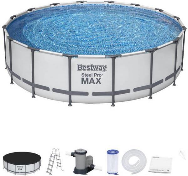 Bestway Basen Steel Pro MAX z akcesoriami, 488 x 122 cmBasen Steel Pro MAX marki Bestway z akcesoriami zapewni Ci mnóstwo zabawy z rodziną i przyjaciółmi. Okrągły kształt oferuje więcej miejsca do pływania i zabawy. Ten stylowy basen ma wzmocnione ścianki, wykonane z tworzywa Tritech - …