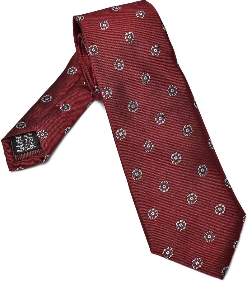 Elegancki bordowy krawat marki VAN THORN. Wykonany z jedwabiu, na bordowej podszewce. Krawat ma wzór białych grochów z szarym elementem w środku. Jest elegancki i stonowany, będzie pasował do biznesowych stylizacji. Idealny do granatowego czy grafitowego garnituru. Może być doskonałym prezentem dla eleganckiego mężczyzny.