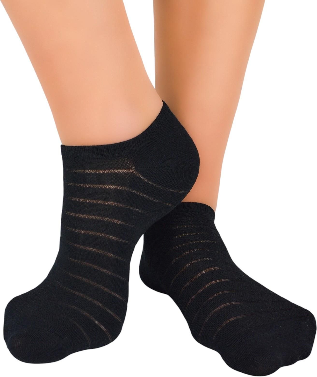 Cienkie, dziewczęce stopki w klasycznym czarnym kolorze z ozdobnym wzorem. Dzięki elastycznemu materiałowi idealnie przylegają do stopy. Świetnie sprawdzą się zarówno do balerinek, jak i butów sportowych. Skład - 75% modal, 22% poliamid, 3% elastan.