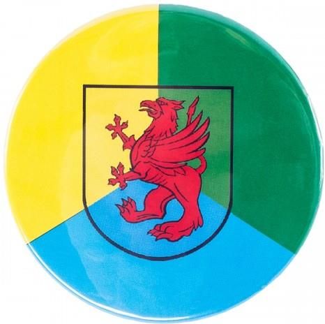 Magnes herb Kociewia Magnes metalowy z herbem kociewskim. Magnes jest również otwieraczem. Kociewie to urocza, chętnie odwiedzana przez turystów część woj. pomorskiego. Zamieszkujący ją mieszkańcy po dziś dzień kultywują swoje rodzime tradycje, kociewską gwarę, haft czy lokalną kuchnię. Średnica 5,6 cm Wyprodukowano na Pomorzu. Garść podstawowych informacji o Kociewiu można znaleźć na naszym blogu - wejdź tutaj.