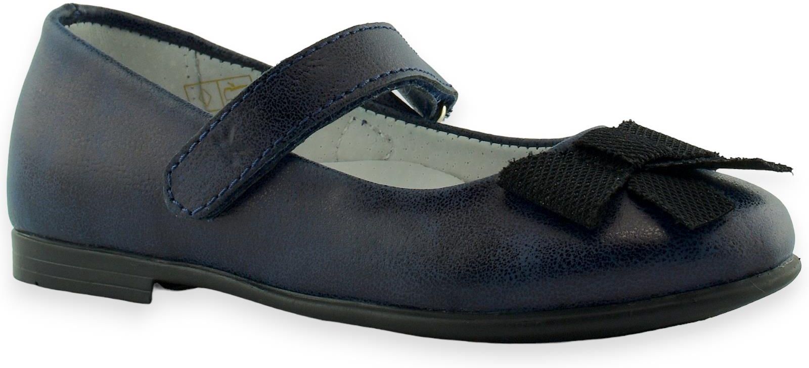 Klasyczny fason w balerinkach marki Konrecki, sprawdza się w każdej stylizacji. Piękny głęboki granat i zapięcie na rzep. Błysku dodaje brokatowa kokarda na przodzie buta.