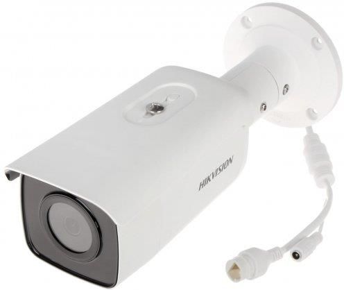 Hikvision DS-2CD3T26G2-4IS to 2-megapikselowa stałoogniskowa kamera IP Hikvision z serii SmartIP. DS-2CD3T26G2-4IS oferuje możliwość podłączenia mikrofonu oraz głośnika - kamera wspiera dwukierunkowe audio. Hikvision DS-2CD3T26G2-4IS dzięki algorytmom sztucznej inteligencji zamkniętych w technologii AcuSense pozwala na konfigurację zaawansowanych funkcji analizy obrazu - kamera potrafi klasyfikować obiekty pojawiające się na scenie co znacznie zmniejsza występowanie fałszywych alarmów. DS-2CD3T26G2-4IS wyposażona jest w przetwornik wspierany technologią DarkFighter, dzięki temu kamera jest w stanie wychwycić więcej detali z obrazu zwłaszcza po zmroku. Hikvision DS-2CD3T26G2-4IS(4mm) generuje obraz w rozdzielczości 1920x1080px o kącie widzenia 86°, interfejs kamery pozwala na korektę obrazu przy użyciu funkcji TrueWDR 120dB, BLC, HLC oraz 3D DNR. DS-2CD3T26G2-4IS posiada promiennik podczerwieni, który efektywnie doświetla scenę do 90m. Hikvision DS-2CD3T26G2-4IS może nagrywać na kartę pamięci - kamera posiada wbudowany slot kart pamięci microSD obsługujący karty o pojemności do 256GB. DS-2CD3T26G2-4IS może być zasilana poprzez standardowy zasilacz wtyczkowy 12V 1A lub poprzez skrętkę - Power over Ethernet PoE 802.3af.