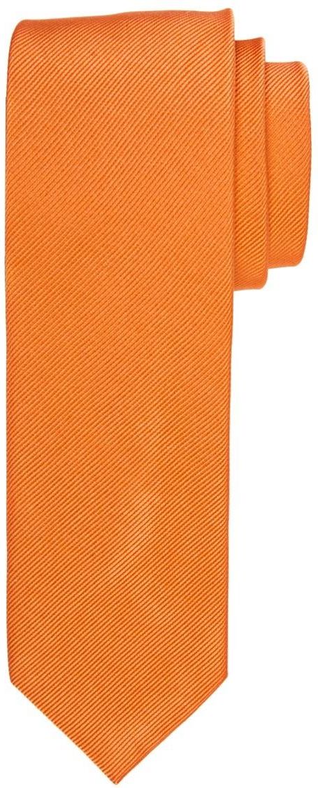Elegancki pomarańczowy krawat jedwabny. Jedwab ma skośny splot i widać na nim delikatne skośne prążki. Krawat jest idealnym prezentem dla modnego mężczyzny. Ładnie podkreśli każdą stylizację, w szczególności będzie dobrze wyglądać z granatową marynarką i białą koszulą. Szerokość krawata: 8 cm Długość krawata: 146 cm