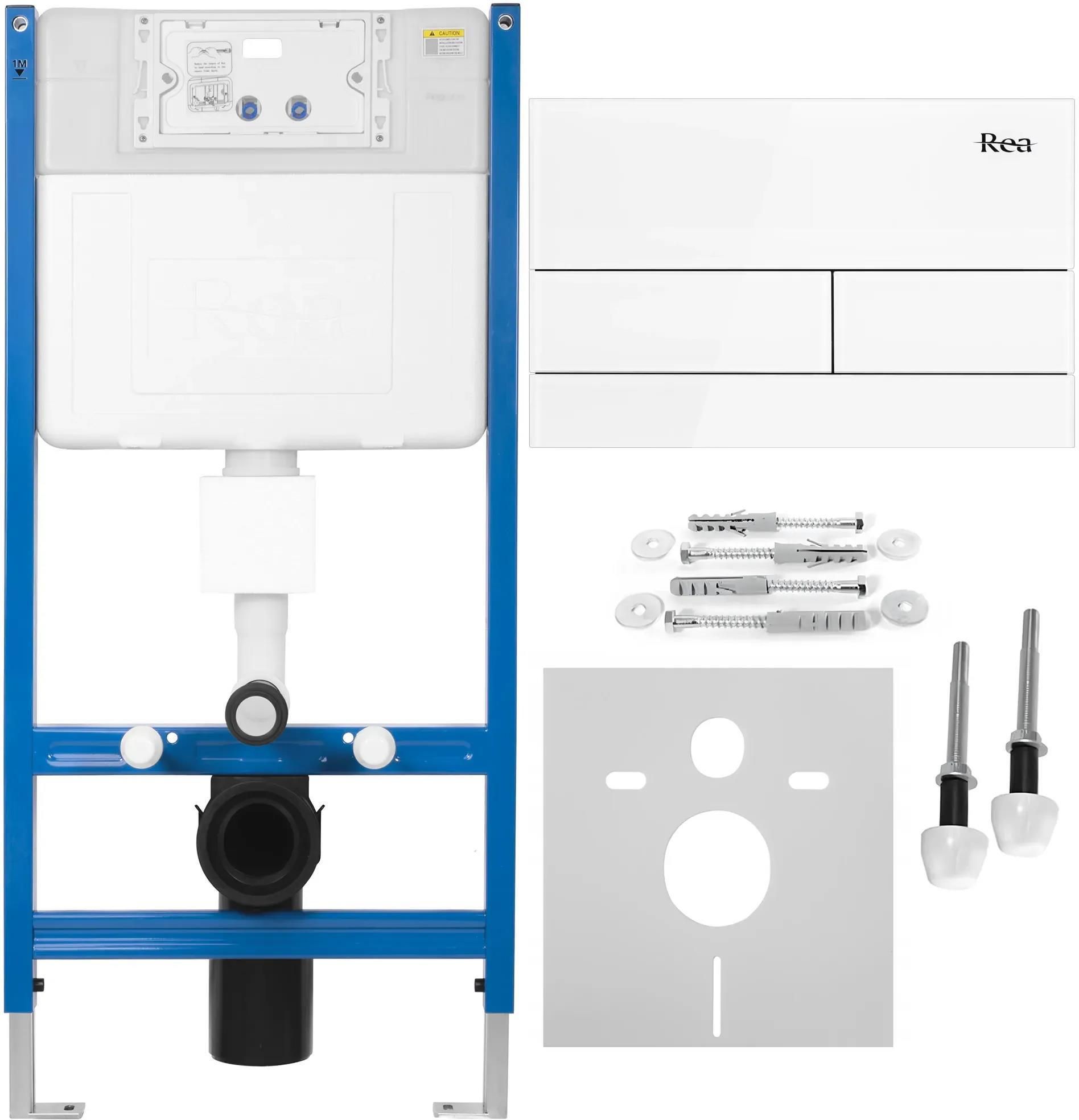 STELAŻ WC ZE SZKLANYM PRZYCISKIEM TYP T PODTYNKOWY DO ZABUDOWY REA BIAŁY Stelaż podtynkowy REA® z białym szklanym przyciskiem – kompletny zestaw do montażu WC Postaw na jakość, funkcjonalność i elegancję – wybierz kompletny zestaw stelażowy REA®, który pozwala na szybki i bezproblemowy montaż miski WC w każdej nowoczesnej łazience. To rozwiązanie stworzone z myślą o wygodzie użytkownika i trwałości na lata. Zestaw łączy solidną konstrukcję, uniwersalność zastosowania i minimalistyczny design, który idealnie komponuje się z wnętrzami urządzonymi w różnych stylach. Kompletny zestaw montażowy 6w1 – wszystko, czego potrzebujesz Zestaw zawiera wszystkie niezbędne elementy, dzięki czemu nie musisz niczego dokupywać osobno. Otrzymujesz: Stelaż podtynkowy wykonany z wytrzymałej, odpornej na korozję stali nierdzewnej Szklany przycisk spłukujący – nowoczesny i elegancki Mata wygłuszająca - chroniąca przed hałasem Komplet rur do podłączenia misy WC Zestaw montażowy do ściany lub ściany szkieletowej Akcesoria do zawieszenia misy WC Wyjątkowa trwałość i zabezpieczenie podczas montażu Stelaż został zaprojektowany z myślą o latach niezawodnej pracy. Wzmocniona rama ze stali nierdzewnej gwarantuje stabilność całej konstrukcji. W zestawie znajdują się także: Dekle zabezpieczające dopływ i odpływ – chronią elementy instalacji podczas remontu Kołki i śruby montażowe – umożliwiają trwałe przymocowanie ramy do ściany i podłogi Śruby montażowe do misy WC – ułatwiają bezpieczne i precyzyjne zawieszenie ceramiki Mata wygłuszająca – komfort użytkowania i ochrona płytek W zestawie znajduje się mata wygłuszająca, która pełni trzy kluczowe funkcje: Chroni płytki pod miską WC przed zarysowaniami Tłumi odgłosy przepływu wody oraz dźwięki związane z użytkowaniem Zapobiega przenoszeniu dźwięku materiałowego na strukturę ściany To rozwiązanie znacznie poprawia komfort codziennego korzystania z toalety. Najważniejsze zalety zestawu REA Kompletny zestaw 6w1 – oszczędzasz czas i pieniądze Solidna konstrukcja – stal nierdzewna zapewnia długą żywotność Mosiężny zawór odporny na korozję Możliwość regulacji wysokości stelaża – dopasowanie do różnych przestrzeni Cicha praca – dzięki warstwie wygłuszającej Uniwersalność – kompatybilny z różnymi typami ścian i misek WC Łatwy montaż zarówno w ścianach pełnych, jak i lekkiej zabudowie Specyfikacja techniczna stelaża Producent: REA® – Łazienka z Wyobraźnią Typ: Stelaż podtynkowy WC Konstrukcja: Stal nierdzewna Spłukiwanie: 3/6 litrów Kolanko odpływowe: ? 90 mm Rozstaw śrub montażowych: 18/23 cm Regulacja wysokości: Tak Regulacja głębokości zabudowy: Tak Montaż: Do ścian pełnych, lekkich i szkieletowych (do suchej zabudowy) Zawór: Mosiężny Mata wygłuszająca: W zestawie Zabezpieczenie na czas montażu: Dekle ochronne dopływu i odpływu Do stelaża pasują wyłącznie przyciski spłukujące typu T. Nie są kompatybilne przyciski typu E, F i H. Specyfikacja techniczna przycisku Materiał: Szkło hartowane Kolor: Biały połysk Długość: 15,5 cm Wysokość: 24 cm Głębokość: 4 cm Kompatybilność: Tylko ze stelażem REA® K011A-Q