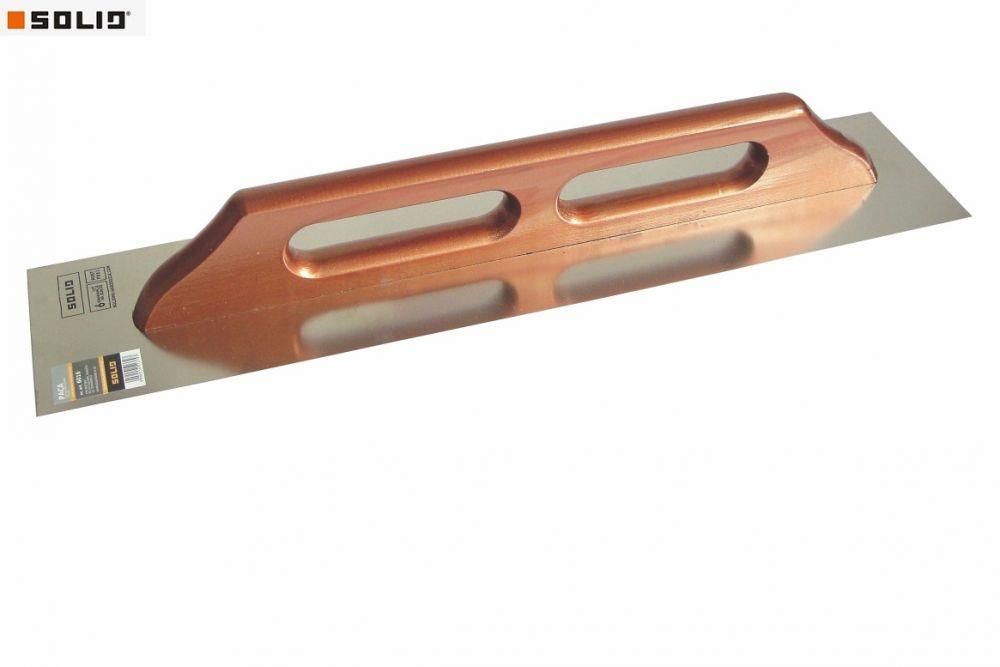 SOLID PARTNER 6010 PACA 130/380 NIERDZ R DREWNO Paca nierdzewna gładka z rączką drewnianą 130x380mm Paca wykonana jest ze stali nierdzewnej kwasoodpornej i grubości 0,7 mm. Rękojeść pacy wykonana jest z drewna lakierowanego i doskonale leży w dłoni podczas pracy. Paca może być używana podczas prac gipsowych, nakładnia tynków strukturalnych oraz nakładania klejów. symbol: 6010 długość: 380 mm szerokość: 130 mm materiał blatu: stal nierdzewna, kwasoodporna, grubość 0,7 mm