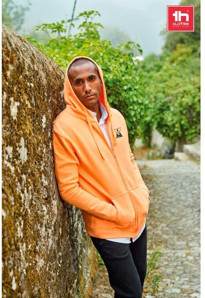 Męska bluza z kapturem zapinana na suwak. 50% bawełna i 50% poliester (320 g/m²) ze zgrzebnym wnętrzem. Kaptur jest podszyty i posiada kolorowy sznurek do ściągania. Bluza ma 2 kieszenie kangurkowe i kryty plastikowy zamek błyskawiczny. Fason ze ściągaczami przy mankietach i na dole. Rozmiary: S, M, L, XL, XXL