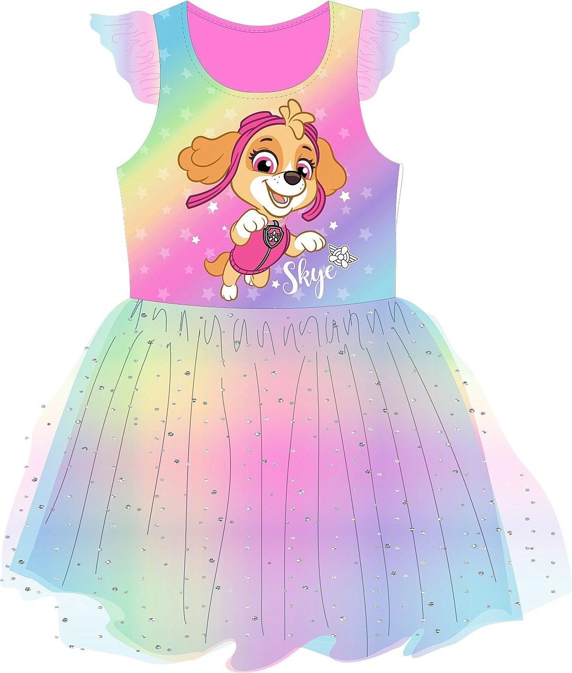 Dziewczęca sukienka na ramiączkach z tiulowym dołem, pełna blasku i uroku. Idealna na lato, bal karnawałowy lub przyjęcie – szczególnie dla małych fanek kucyków i Psiego Patrolu. Skład: - 100% Poliestere