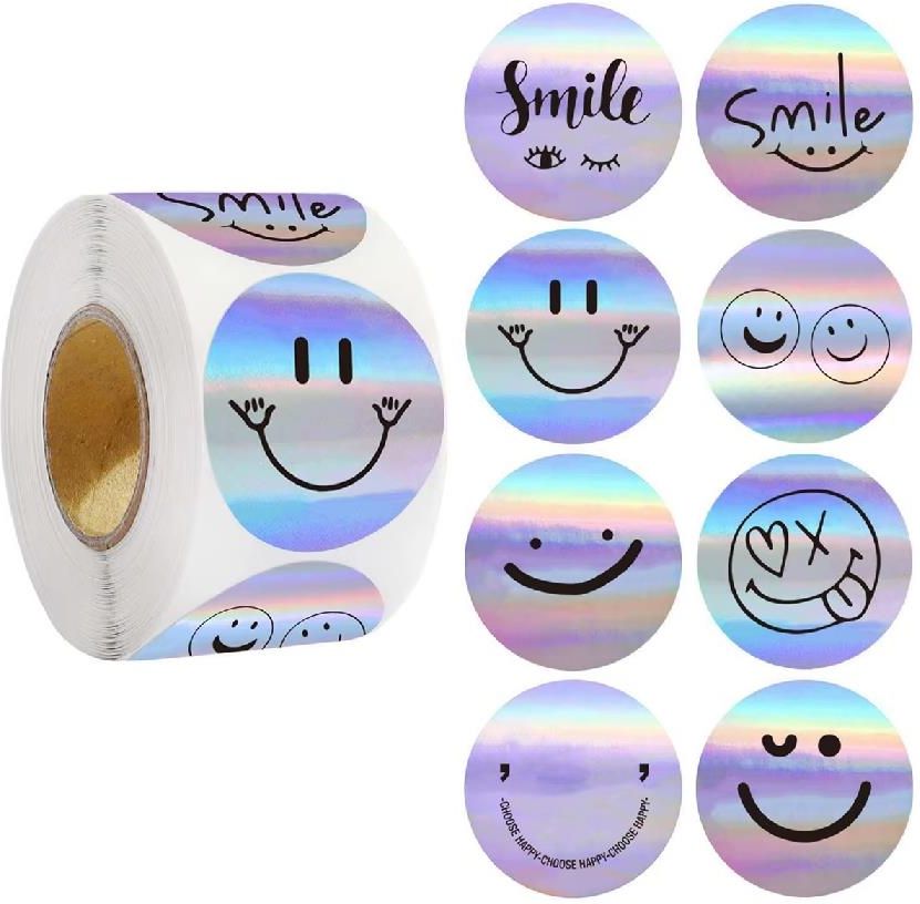 Miniaturka przedstawia realne zdjęcie sprzedawanego przedmiotu: Zestaw Naklejek holograficznych "Smile" na rolce 500 szt. Zestaw 500 holograficznych okrągłych naklejek "Smile", idealnych jako etykiety dekoracyjne. Te urocze naklejki doskonale sprawdzą się do różnorodnych celów, od personalizacji …