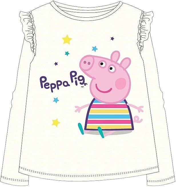 Bluzka z długim rękawem z uwielbianą świnką Peppą, bohaterką popularnej bajki. Falbanki oraz żywe kolory nadruku z pewnością oczarują każdą dziewczynkę. Idealna do żłobka, przedszkola i na co dzień. Skład : -100% Bawełna