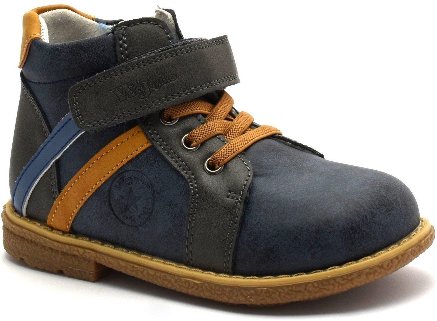 Trzewiki ze skórzaną wkładką i wyściółką. Usztywniony zapiętek utrzymuje nogę we właściwej pozycji, a gumki ściągające ułatwiają samodzielne zakładanie i zdejmowanie.