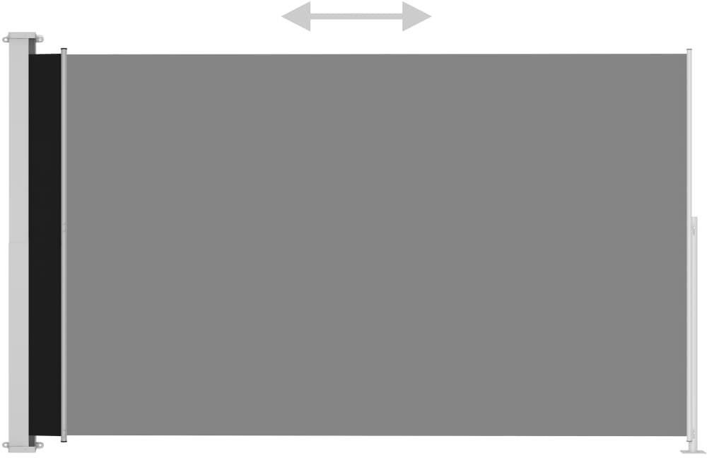 VidaXL Zwijana markiza boczna na taras, 200x300 cm, czarna vidaXL Kolor: Array Rozmiar: Array Prosta, a zarazem stylowa markiza boczna pozwoli stworzyć przyjemny zakątek, zapewniając jednocześnie prywatność, której potrzebujesz na balkonie lub tarasie. Ochroni Cię także przed wiatrem oraz słońcem. Ekran wykonano z odpornego na promieniowanie UV, wodę i rozdarcie poliestru. Kaseta jest zamontowana na stabilnej, stalowej podstawie w pozycji pionowej, a markizę wyciąga się z niej bez trudu. Osłona ta oferuje funkcję automatycznego zwijania. Dostawa obejmuje również akcesoria montażowe. Kolor: czarno-szary Materiał: tkanina (100% poliester) z powłoką PU, malowana proszkowo stal Wymiary: 200 x 0-300 cm (wys. x szer.) Gramatura tkaniny: 180 g/m² Produkt odporny na promieniowanie UV i wodę Uwaga: korpus obudowy 200 cm składa się z dwóch części o wysokości 100 cm.