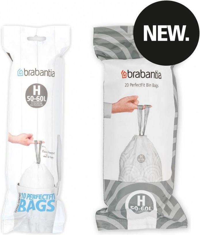 Worki na śmieci PerfectFit Brabantia znakomicie dopasowują się do Twojego kosza marki Brabantia oraz życia wypełnionego różnymi zajęciami. To dlatego są bardzo mocne i mają praktyczną taśmę do wiązania! Po prostu pociągnij ją, aby wyjąć worek z kosza i go zawiązać! Nie masz pewności, którego rozmiaru potrzebujesz? Po prostu sprawdź kod kolorystyczny na wewnętrznej stronie pokrywy kosza. To wspaniałe worki pasujące idealnie do koszy marki Brabantia.Zalety produktu:Idealne dopasowanie – precyzyjnie dopasowane do koszy marki Brabantia.Odporny na rozdarcia – wykonany z wytrzymałego tworzywa sztucznego.Bez nieestetycznie wywiniętej krawędzi – worek na śmieci jest niewidoczny, gdy pokrywa jest zamknięta.Praktyczna taśma do wiązania – łatwe otwieranie i zamykanie.Bezproblemowa wymiana – specjalne otwory wentylacyjne zapobiegające powstawaniu próżni.Zawsze właściwy rozmiar – dopasowany kod kolorystyczny do kosza Brabantia.Dokładnie to, czego potrzebujesz – 20 worków na śmieci, które idealnie pasują do kosza 50–60 l marki Brabantia (kod H). Materiał Tworzywo sztuczne