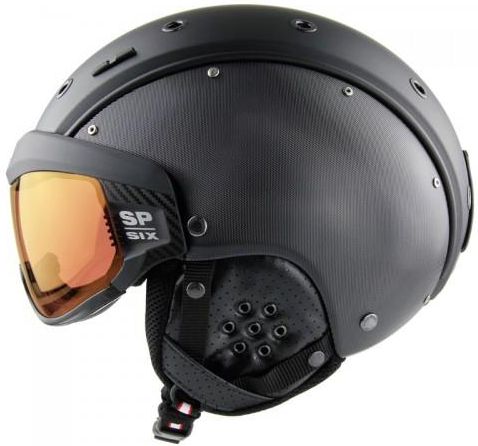 Kask narciarski renomowanej niemieckiej firmy CASCO. SP-6 Visor VAUTRON kask wykonany metodą Monocoque-Ultra (wzmocniony odlew stalowymi nitami) posiada wiele standardów bezpieczeństwa oraz certyfikaty takie jak TUV, ISO 9001. Kask zapinany jest klamrą umiejscowioną pod szyją. Rozmiar kasku dopasowuje się poprzez system disk fit VARIO, jest to wewnętrzny pierścień dopasowujący się do głowy użytkownika za równo pod względem obwodu jak i konta pochylenia w celu optymalnego dopasowania szyby do twarzy (nosa i policzków). Uszy kasku pokryte są miłym w dotyku sztucznym futerkiem i są odczepiane. Przewiew kasku zapewnia system Klima-Automatik, liczne otwory i kanały wentylacyjne przez które wlatuje i wylatuje powietrze. Szyba mocowana jest za pomocą gumek, co jest istotne w chwili upadku, szyba "ucieka" do góry nie uszkadzając kręgów szyjnych, co się dzieje w modelach innych marek kasków z szybami. Szybę wykoanana jest w technologii VAUTRON automatic o kategorii filtra 1-3. Jest to jedna z najlepszych technologii stosowanych w szybach sportowych - jest fotochromatyczna, poprawia kontrast widzenia, na właściwości anty-fog udzielana jest dożywotnia gwarancja, jest odporna na zarysowania, łatwa w konserwacji (tylko czysta woda). Boki zewnętrznej powłoki kasku mają chropowatą strukturę tzw. skóra rekina. W zestawie z kaskiem jest twardy pokrowiec. Kask występuje w rozmiarze L (58-62cm.)