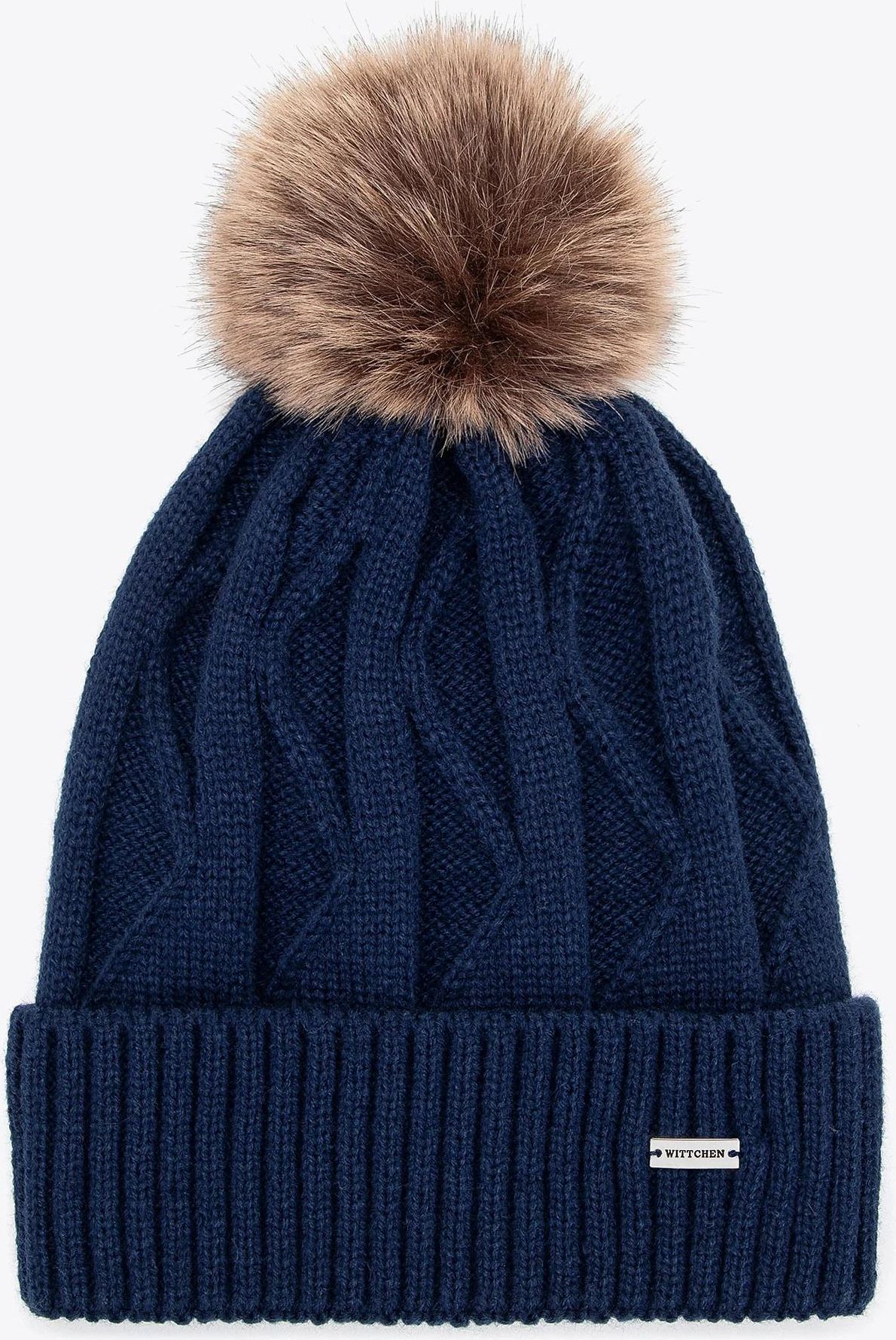 Czapka damska z kontrastującym pomponem granatowa Pruszków