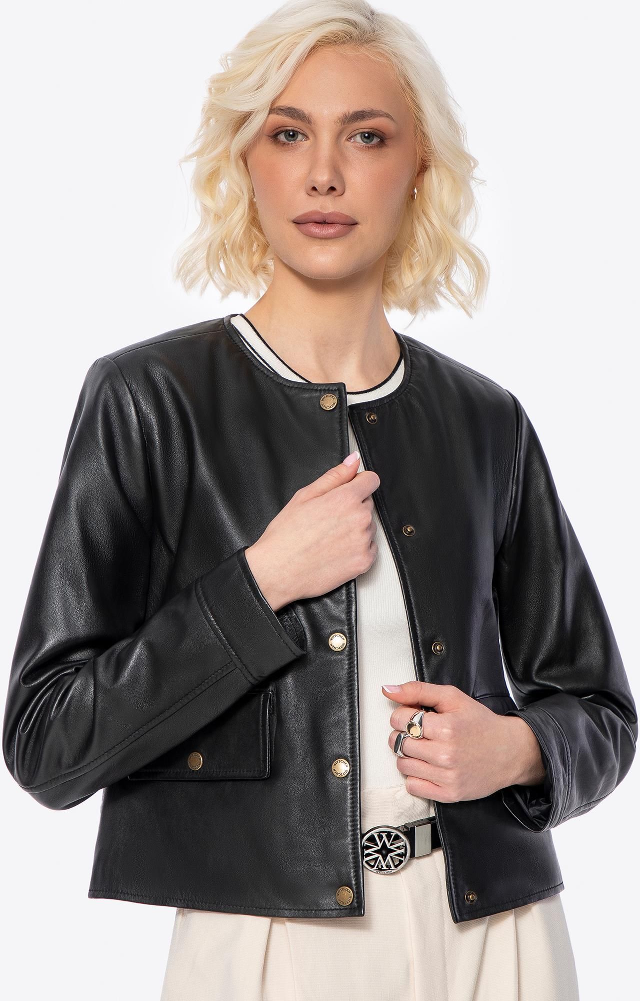 Damska kurtka ze skóry o prostym fasonie czarna Pruszków