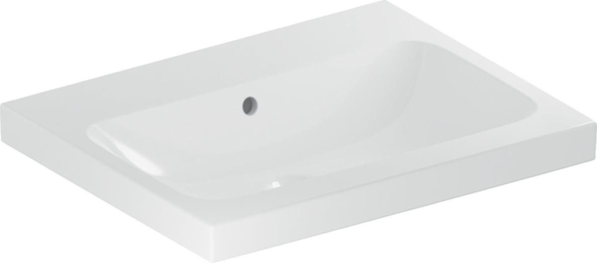 Szerokość: 60 cm Głębokość: 48 cm Wysokość: 16 cm Bez otworu na baterię Z przelewem Możliwość osadzenia w blacie Szerokość szafki: 59,2 cm Materiał: ceramika Specjalne szkliwo Geberit KeraTect® zapewnia długotrwałą ochronę powierzchni ceramicznych: jest gładka i odporna na zabrudzenia, a zatem łatwa w pielęgnacji Kolor: biały