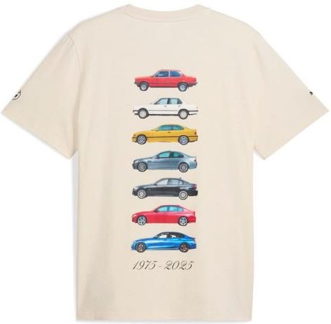 Limitowana koszulka stworzona z okazji 50-lecia BMW Serii 3 1975 - 2025. Wykonana z dzianiny single jersey w swobodnym kroju relaxed fit. Łączy w sobie sportowy charakter, motoryzacyjną pasję i wygodę na co dzień. Haftowane logo PUMA Cat na rękawie Kolorowe haftowane logo BMW na rękawie 3D haftowane logo 50 Years 3 Series Anniversary na piersi Unikalny nadruk przedstawiający 7 generacji BMW Serii 3 na plecach Kolor: beżowy Materiał: 70% bawełna, 30% bawełna z recyklingu