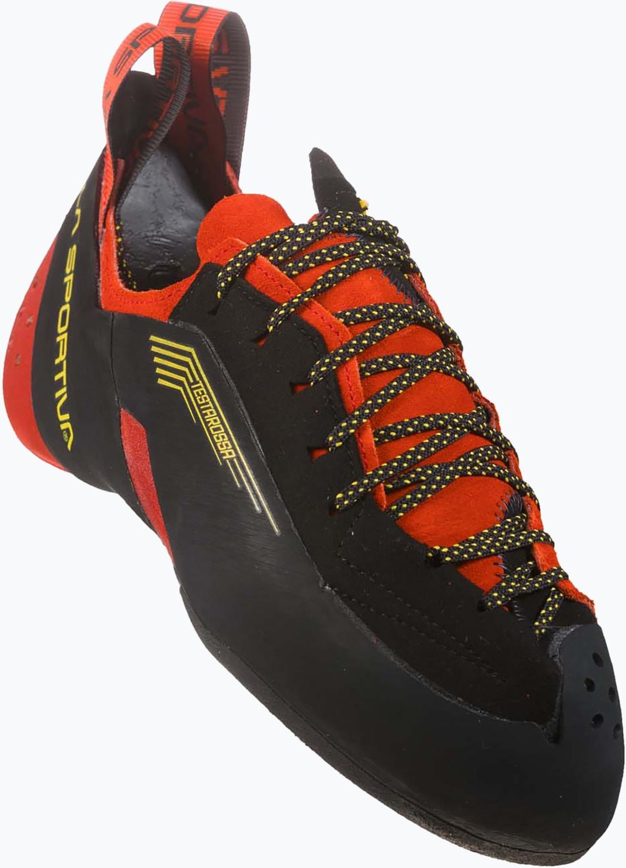 Buty wspinaczkowe męskie La Sportiva Testarossa to doskonałe połączenie syntetycznych i naturalnych materiałów, które oferują kompromis pomiędzy komfortem a funkcjonalnością. Buty La Sportiva Testarossa wyróżnia wyjątkowa konstrukcja, umieszczająca podeszwę środkową tylko w przedniej części buta, sprawia, że lepiej przylega on do łuku stopy. Pięta została zaprojektowana tak, aby poprawić wydajność przy hakowaniu. Agresywna forma buta gwarantuje precyzyjność na drogach wspinaczkowych, a maksymalna czułość w palcach umożliwia pewne oparcie na mikrostopniach.