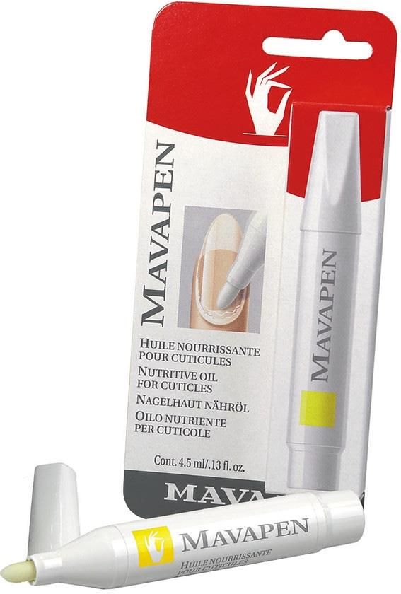 Praktyczny pisak pozwalający uzyskać zadbany kontur paznokcia. Jedno pociągnięcie MAVAPENEM pozostawia na skórkach kilka kropel odżywczego, nawilżającego i wygładzającego olejku, bogatego w witaminy E i F, który zmiękczy je i pomoże delikatnie usunąć te, które narosły na płytkę paznokcia.