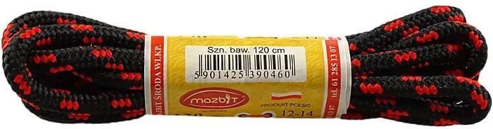 Czarno-czerwone, trekkingowe sznurówki do butów, 200 cm, Mazbit idealne do nawlekania 18-24 oczek w cholewce obuwiowej. Szerokość sznurówek 5 mm.