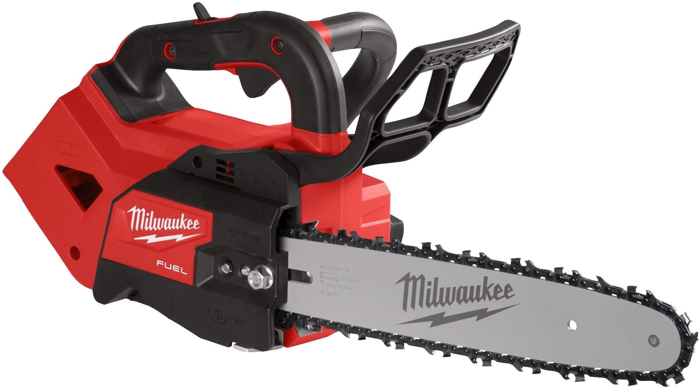 M18 FTHCHS30-0 | M18 FUEL™ PILARKA ŁAŃCUCHOWA Z GÓRNYM UCHWYTEM 30 CM Znakomita prędkość cięcia w twardym drewnie w porównaniu z niektórymi pilarkami spalinowymi lub pilarkami z górnym uchwytem o wyższym napięciu  Wysoki moment obrotowy do cięć w wymagających materiałach i utrzymanie prędkości pod dużym obciążeniem bez zacinania się  Technologia FUEL™ pozwala na osiągnięcie pełnej mocy w czasie krótszym niż 1 sekunda  Do 150 cięć w twardym drewnie o wymiarach 10x10 cm na jednym ładowaniu akumulatora M18™ HIGH OUTPUT™ 8.0 Ah  Konstrukcja górnego uchwytu i zoptymalizowana równowaga idealnie nadaje się do pielęgnacji drzew na wysokościach  Włącznik spustowy z regulacją prędkości pozwala na pełną kontrolę mocy  Pasek z karabińczykiem do szybkiego mocowania i wyjmowania z uprzęży Ergonomiczny, wygięty uchwyt kabłąkowy zapewnia wygodną obsługę w wielu pozycjach  Wbudowany schowek i łatwy dostęp do napinacza łańcucha dla większego komfortu użytkownika  Metalowe kolce powodują zwiększenie siły dźwigni podczas cięcia  Szczelny zbiornik oleju z łatwo dostępnym otworem i okienkiem podglądu ilości cieczy W zestawie 76 ml oleju, klucz serwisowy i pokrowiec  System narzędzi HIGH OUTPUT™ wynosi technologie M18 FUEL™ na nowy poziom i zapewnia zwiększoną wydajność oraz wydłużony czas pracy. Narzędzia te zostały zaprojektowane tak, aby zmaksymalizować współpracę z akumulatorami HIGH OUTPUT™  Elastyczny system bateryjny gwarantuje współpracę ze wszystkimi akumulatorami MILWAUKEE® M18™