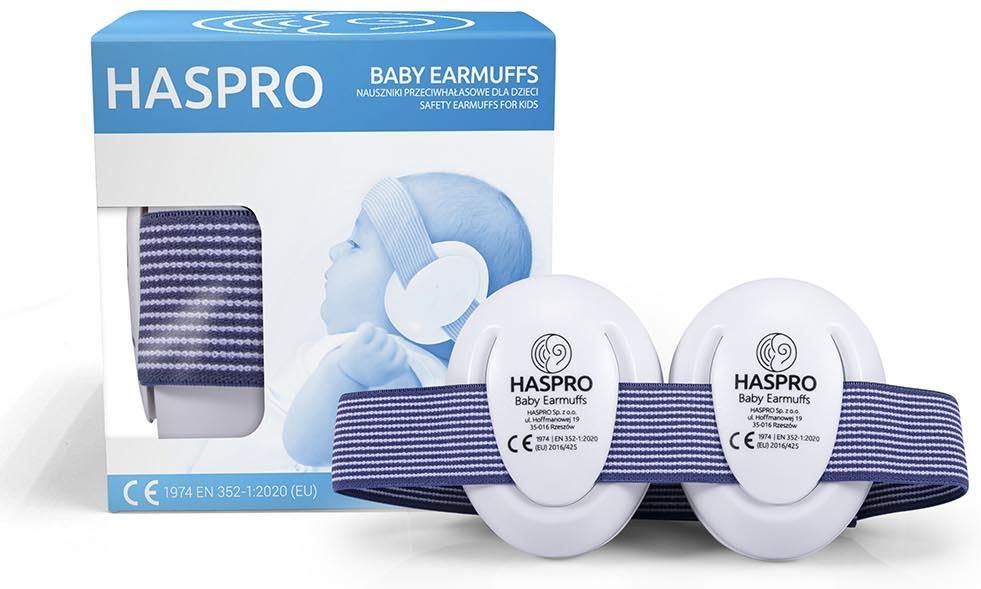 Składana nauszniki ochronne HASPRO Baby Earmuffs - nauszniki wyciszające dla niemowląt i małych dzieci. Wygodne, lekkie, o szerokim zastosowaniu.