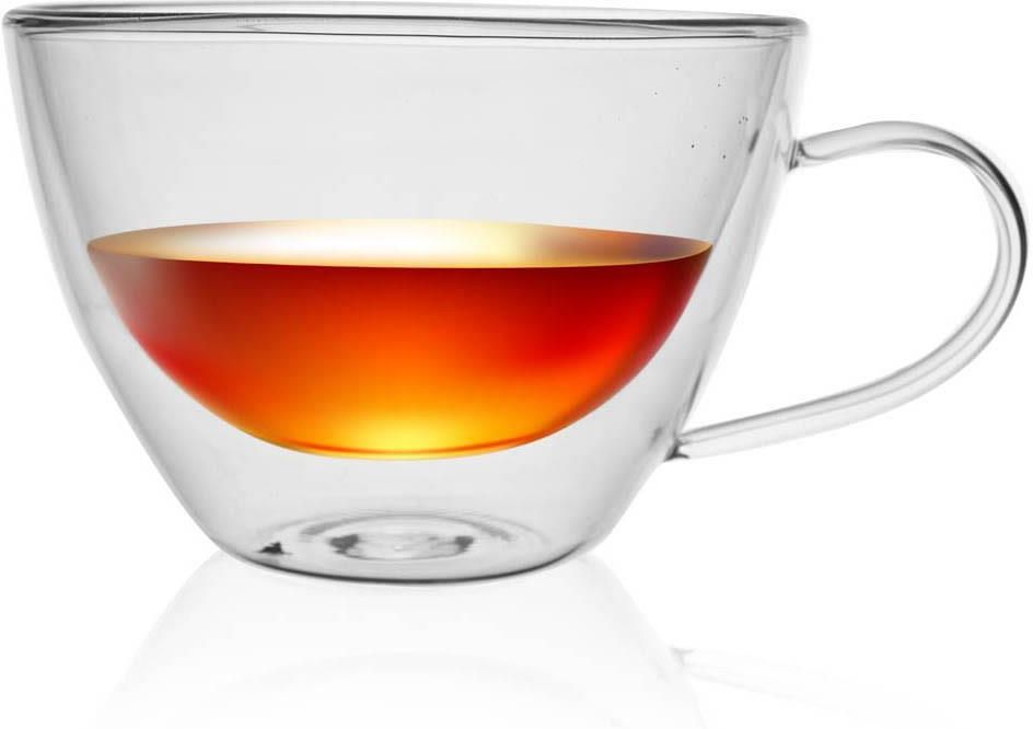 Szklanka termiczna z podwójną ścianką w nowoczesnym designie. Zwiększona odporność na wysokie i niskie temperatury (od -10°C do +210°C), zarysowania, pęknięcia i chemikalia. Materiał: szkło borokrzemowe. Wymiary: śr. 12cm, wys. 8cm. Pojemność: 400ml.