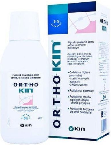 Skład Chlorheksydyna 0,06% Octan cynku 0,34 % Fluorek sodu 0,05 % (226 ppm F-) Postać farmaceutyczna Płyn 500 ml Wskazania do stosowania Utrzymanie prawidłowej higieny jamy ustnej dla osób noszących aparaty ortodontyczne Ochrona przed próchnicą Ochrona przed nadmiernym rozwojem płytki bakteryjnej Dla pacjentów nie dbających o higienę jamy ustnej Dla pacjentów z tendencją do zapalenia dziąseł Ochrona aparatu ortodontycznego Zalety Potrójne działanie – chroni zęby, dziąsła i aparat ortodontyczny Dzięki zawartości chlorheksydyny wykazuje mocniejsze działanie, stąd polecany jest dla osób noszących aparat ortodontyczny, mających problem z utrzymywaniem prawidłowej higieny jamy ustnej i z tendencją do zapalenia dziąseł Skutecznie chroni przed próchnicą Nie podrażnia dziąseł – nie zawiera alkoholu Przyjemny, łagodny miętowy smak Dłuższa ochrona antyseptyczna Sposób użycia Płukać jamę ustną 15 ml nierozcieńczonego płynu ORTHOKIN dwa razy dziennie przez 1 minutę, nie połykać Przez co najmniej pół godziny po zastosowaniu nie zaleca się przyjmować napojów ani pokarmów Przeciwwskazania Nadwrażliwość na który którykolwiek ze składników Jak wiadomo aparat ortodontyczny zakładany jest często na kilka lat, a nieodłącznym elementem noszenia aparatu jest prawidłowa higiena jamy ustnej, która w tym przypadku nie jest taka prosta. Utrzymanie codziennej prawidłowej higieny jamy ustnej przez osoby noszące aparat jest bardzo ważne ale również dużo trudniejsze, ponieważ aparat utrudnia oczyszczenie wszystkich powierzchni zębów. Dlatego też należy zwrócić szczególna uwagę na higienę i poświęcić jej odpowiednio dużo czasu. Stworzono całą serię produktów mających na celu złagodzić dyskomfort spowodowany noszeniem aparatu. Pośród tych produktów możemy wyróżnić między innymi woski i silikony. Dla ułatwienia możemy zastosować szczoteczki posiadające specjalnie wyprofilowane włosie, szczoteczki miedzy zębowe, nici do aparatów czy też irygatory pozwalające na skuteczne oczyszczenie trudno dostępnych miejsc. Oprócz wymienionych powyżej akcesoriów najprostszym sposobem ułatwiającym codzienną pielęgnację jamy ustnej jest używanie płynnych past przeznaczonych specjalnie dla pacjentów noszących aparaty ortodontyczne, które lepiej docierają do trudno dostępnych miejsc przy aparacie. Dla wzmocnienia efektu należy również korzystać z płynów ortodontycznych do płukania jamy ustnej, które umożliwiają dłuższe utrzymanie się aktywnych składników antyseptycznych w jamie ustnej, zapewniających tym samym większą skuteczność i lepszą ochronę zębów i dziąseł. Zaniedbanie i zlekceważenie higieny jamy ustnej u osób noszących aparaty może prowadzić do powstania białych plam na zębach czyli odwapnienia szkliwa oraz do powstania próchnicy. Czyszczenie zębów na których założony jest aparat powinno odbywać się po każdym posiłku, tak aby resztki pożywienia nie pozostawały w zakamarkach aparatu. Aby dokładnie oczyszczać zęby i aparat należy zaopatrzyć się w odpowiednią szczoteczkę, najlepiej z rowkiem pośrodku, która ułatwia czyszczenie całej powierzchni zębów i zewnętrznej części aparatu. Można również używać szczoteczek elektrycznych z odpowiednią główką, przydatne są również szczoteczki z małą główką i cienkimi włóknami, które oczyszczają miejsca miedzy zębami i pod drucikami. Należy również korzystać z odpowiednich nici dentystycznych. Podczas dbania o higienę jamy ustnej ważna jest również odpowiednia technika czyszczenia zębów, czyli układamy szczoteczkę pod kątem 45 stopni w kierunku dziąseł i wykonujemy delikatne ruchy do przodu i do tyłu. Tak czyścimy wszystkie powierzchnie zębów zewnętrzne i wewnętrzne. Czyścimy również linie dziąsła i powierzchnie gryzące. Możemy również skorzystać z pomocy irygatora wodnego, który za pomocą wody pod ciśnieniem oczyści trudno dostępne miejsca a przy okazji wymasuje dziąsła. Podczas noszenia aparatu ortodontycznego warto również skorzystać z pomocy stomatologa w celu oczyszczania osadów i wykonać nawet co trzy miesiące zabieg piaskowania. Jeśli decydujemy się na leczenie ortodontyczne i noszenie aparatu to musimy być świadomi, że wraz z założeniem aparatu nasza codzienna pielęgnacja jamy ustnej będzie utrudniona i zajmie nam trochę więcej czasu. Jednak dzięki temu po zdjęciu aparatu będziemy mogli cieszyć się nie tylko zdrowymi ale również zdrowymi i zadbanymi zębami. Marka KIN przygotowała serie produktów OrthoKIN czyli ortodontyczna pasta do zębów i ortodontyczny płyn do płukania jamy ustnej. Są to dwie serie w skład których wchodzą produkty oparte na chlorheksydynie i na chlorku cetylopirydyniowym. Płyn do płukania jamy ustnej i pasta do zębów w formie żelu OrthoKIN oparte na chlorheksydynie przeznaczone są dla pacjentów z tendencją do zapalenia dziąseł oraz dla pacjentów mających problem z utrzymaniem higieny jamy ustnej. Specjalnie opracowana seria zapewniająca potrójne działanie ponieważ chroni zęby, dziąsła i aparat ortodontyczny. Nieoczyszczona płytka bakteryjna, resztki pożywienia i ucisk aparatu mogą powodować erozje szkliwa, ryzyko próchnicy a także zapalenie dziąseł i właśnie OrthoKIN czyli płynna pasta w żelu i płyn do płukania jamy ustnej zapobiega tym sytuacjom i gwarantuje właściwą higienę. A dzięki temu że produkty oparte są na chlorheksydynie wykazują silniejsze działanie. Chlorheksydyna w niskim stężeniu w połączeniu z cynkiem skutecznie kontroluje płytkę nazębną, zapewnia ochronę dziąseł, jony cynku niwelują ewentualne przebarwienia a formuła bez alkoholu nie podrażnia dziąseł. Zawarty w produktach fluorek sodu wspomaga remineralizację szkliwa i zapobiega próchnicy. A specjalna formuła OrthoKIN zapewnia odpowiednie czyszczenie zamków 