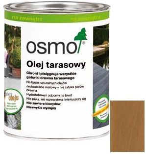 OSMO Specjalny Olej Tarasowy – kolor GARAPA 013 - 2,5L bezbarwne lub przejrzyste, z jedwabistym połyskiem do powierzchni zewnętrznych zaprojektowane do indywidualnych wymogów licznych odmian drewna szlachetnego szczególnie zalecane do mebli ogrodowych oraz desek tarasowych wygładzają powierzchnię drewna hydrofobowe i odporne na brud łatwy w pielęgnacji nanoszenie: w przypadku surowego drewna dwie powłoki, w przypadku renowacji wystarcza z reguły jedna powłoka na oczyszczoną powierzchnię wydajność 1L: ok. 24 m² przy jednej powłoce dostępny w opakowaniach o pojemności: 0,75; 2,5 i 25 litrów Wskazówki użycia Należy pamiętać, że drewno o wysokiej zawartości olejów musi być wietrzone odpowiedni czas przed pierwszą aplikacją, aby oleje mogły dobrze wniknąć i związać się z drewnem. Jeśli chcemy zachować naturalny kolor drewna, należy nałożyć odpowiedni olej tarasowy przed rozpoczęciem procesu szarzenia. Dla efektu naturalnej patyny, zamiast powłoki pigmentowej, należy nałożyć 2 warstwy bezbarwnego Oleju Tarasowego Teak (007). Aby uzyskać mniej intensywne zabarwienie, na powłokę pigmentową można nałożyć bezbarwny olej Osmo. Poszarzałe drewno można odświeżyć przy pomocy Żelu do Usuwania Szarości Drewna przed nałożeniem oleju tarasowego. Dla lepszej przyczepności powierzchni tarasu jako druga warstwa powinien być użyty Antypoślizgowy Olej do Tarasów firmy Osmo. Dla dodatkowej ochrony przed sinicą, zgnilizną lub insektami, drewno należy pokryć Impregnatem do Drewna WR Aqua firmy Osmo, o ile to możliwe ze wszystkich stron. Powierzchnia drewna musi być czysta, sucha i bez zmrożenia (wilgotność max. 20%). Aplikację należy przeprowadzać w bezdeszczowe dni, aby oleje dobrze wyschły. Przygotowanie powierzchni przed olejowaniem tarasów Świeże drewno bogate w składniki organiczne i twarde drewno powinno być przed pierwszym malowaniem wietrzone przez co najmniej 4 tygodnie lub przemyte Środkiem do Odtłuszczania i Czyszczenia Narzędzi (113). Zalecane wietrzenie dla drewna iglastego (modrzew, daglezja) wynosi 6 tygodni, a dla drewna nasycanego ciśnieniowo (massaranduba, garapa, bangkirai) – przynajmniej 3 miesiące. Podczas renowacji, przed nałożeniem pierwszej warstwy, wietrzone drewno należy wyczyścić Żelem do usuwania szarości drewna Osmo i równomiernie odszarzyć. Powierzchnia drewna musi być czysta, sucha i wolna od śladów zmrożenia (maksymalna wilgotność 20%). Olej tarasowy jest gotowy do użycia, nie należy go rozcieńczać, ale dokładnie wymieszać. Stare powłoki, które nie zatykają porów, należy usunąć lub lekko zeszlifować, używając maski przeciwpyłowej. Stare warstwy farb i lakierów należy całkowicie usunąć. Wygląd wykończonej powierzchni zależy od właściwości drewna, dlatego zawsze należy wykonać próbne nałożenie. Jeśli potrzebna jest dodatkowa ochrona przed pleśnią, sinizną lub owadami (szczególnie dla drewna iglastego, np. sosny), drewno należy wcześniej pokryć impregnatem Osmo WR. Aplikacja oleju na taras Olej tarasowy należy nakładać cienką warstwą na czyste i suche drewno, zgodnie z kierunkiem słojów drewna, przy użyciu pędzla Osmo lub szmatki (w przypadku mebli). Do szybkiego olejowania dużych powierzchni zaleca się użycie szczotki do podłóg Osmo (150 mm), umożliwiającej pracę w pozycji stojącej. Olej należy dokładnie i równomiernie rozprowadzić, a następnie pozostawić do wyschnięcia w dobrze wentylowanym miejscu. Po wyschnięciu nanieść drugą, cienką warstwę. Jeśli pożądany jest mniej intensywny efekt kolorystyczny, jako drugą warstwę należy nałożyć Olej Antypoślizgowy do Tarasów. Wyjątek stanowi Olej tarasowy Teak (007).