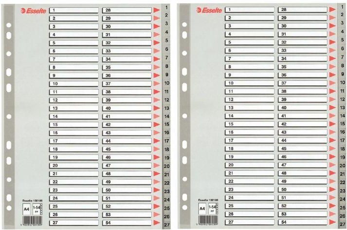 Przekładki Plastik Numeryczne A4 1-54 Szare X2 Pruszków
