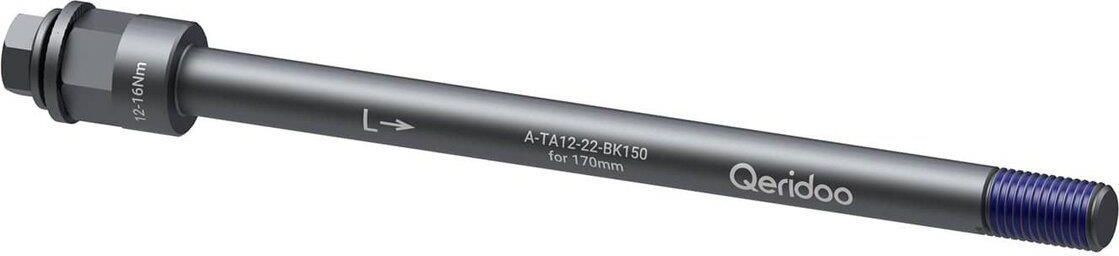 Oś sztywna Qeridoo M12x1,5 - adapter tylnego koła roweru adapter do tylnej osi rowery Thru Axle (sztywnych osi) umożliwia montaż przyczepek rowerowych Qeridoo do rowerów ze sztywną tylną osią gwint: M12 x 1.5 mm długość: 170 mm całkowita długość: 190 mm Kolor osi: czarny