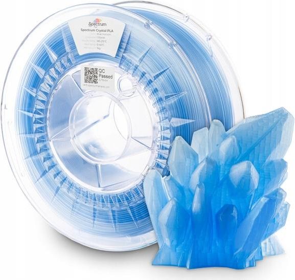 Spectrum Filaments PLA Crystal 1,75 mm 1kg Niebieski Blue Horizon Spectrum filaments to polska marka produkująca filament dla drukarek 3D. W ofercie znajdują się materiały PLA, ABS - w dwóch średnicach, PETG czy filamenty specjalne jak Carbon czy świecące w ciemności. Filament Spectrum pozwoli państwu przenieść wszystkie Państwa projekty w rzeczywisty świat w wysokiej jakości. Dzięki szerokiej gamie kolorystycznej każdy powinien znaleźć coś odpowiedniego dla siebie. Filament Spectrum PLA Crystal Wykonane z wysoko krystalicznego PLA filamenty zapewniają niezwykłą klarowność i estetykę wydruków, niedostępną dla tradycyjnych, nieprzezroczystych filamentów PLA. Ta cecha sprawia, że wydruki z PLA Crystal są atrakcyjne wizualnie i nadają się do różnorodnych zastosowań. Nowa seria filamentów PLA Crystal wyróżnia się również podniesionym o prawie 30% współczynnikiem płynięcia, co przekłada się na płynność i precyzję procesu drukowania. Dzięki temu możesz tworzyć dokładne i złożone modele bez problemów. PLA Crystal cechuje także odporność temperaturowa na poziomie 60 stopni Celsjusza, czyniąc go odpowiednim do zastosowań, gdzie występują umiarkowane temperatury. Filamenty PLA Crystal bazują na biodegradowalnym PLA, a surowiec bazowy użyty do produkcji filamentu posiada dopuszczenie do kontaktu z żywnością. Uwaga: W zależności od siły nawiewu, temperatury oraz prędkości druku powierzchnia finalnego wydruku będzie semi-transparentna lub półmatowa. Kluczowe cechy: semi-transparentne, krystaliczne wydruki, zwiększony współczynnik płynięcia, łatwość druku, produkowany z surowców w pełni biodegradowalnych, temperatura odkształcenia cieplnego - 60°C. Zastosowanie: projekty edukacyjne, prototypowanie, wizualizacja produktów gotowych oraz półproduktów, wzornictwo przemysłowe, projektowanie wnętrz, modele koncepcyjne. Filament nawinięty na przezroczystą, designerską szpulę. Na szpuli znajduje się informacja o rodzaju materiału, średnicy, kolorze oraz rekomendowanej temperaturze drukowania. Każda szpula zapakowana próżniowo z pochłaniaczem wilgoci. Całość w oryginalnie zafoliowanym kartonie Spectrum Filaments. Specyfikacja produktu Materiał: PLA Crystal Kolor: Niebieski - Blue Horizon Średnica: 1,75 mm. Tolerancja wymiarowa: +/- 0,03 mm. Waga netto: 1 kg Wymiar szpuli: śr. zewn. 20 cm, śr. wewn. 5,2 cm, szer. 6,7 cm. Temp. druku: 185°C - 215°C Temperatura stołu: 0°C - 45°C