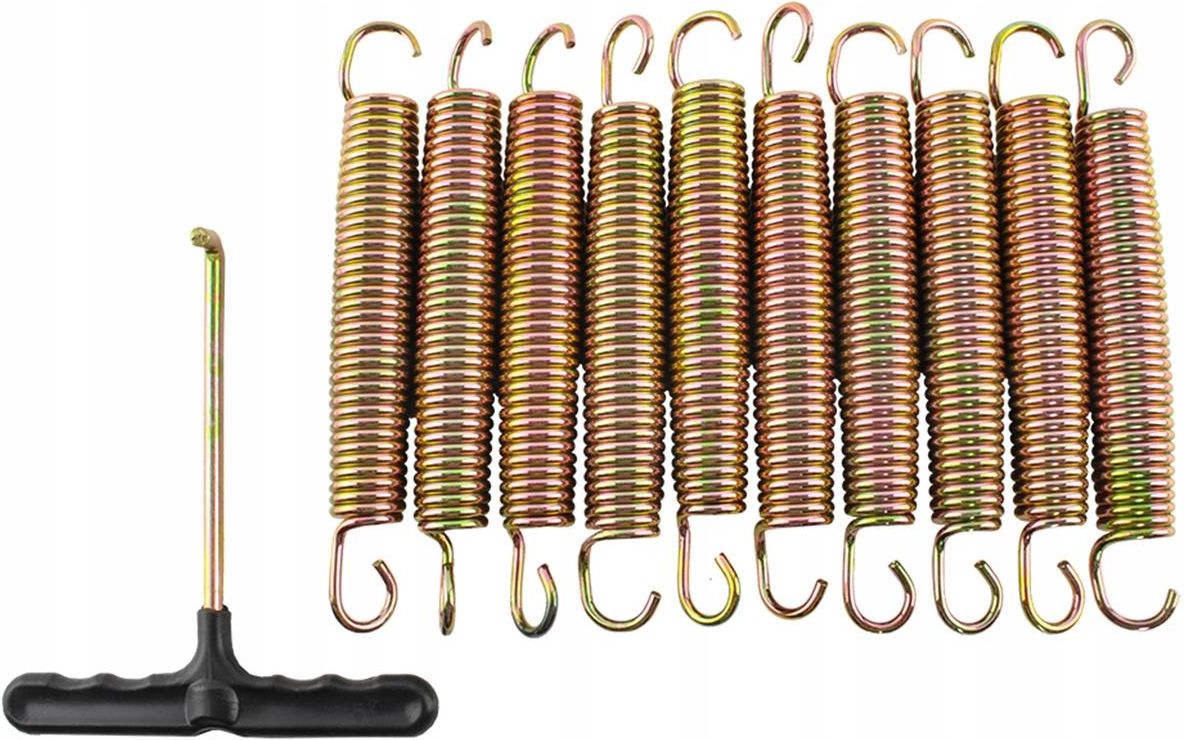 Komplet dziesięciu sprężyn do trampoliny z kluczem do naciągania. Odporne na zmienne warunki atmosferyczne, wytrzymałe i solidne, będą służyć przez długi czas. Sprężyny są wykonane z materiałów wysokiej jakości, ocynkowanego drutu o średnicy 3mm. Dzięki temu mata będzie dobrze, równomiernie chr(13) …