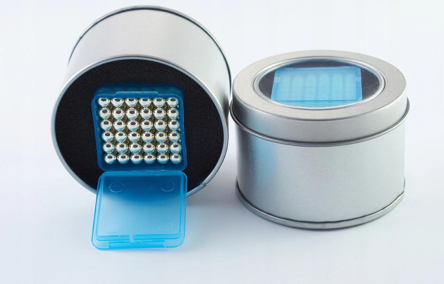 Kulki magnetyczne Neocube 5 mm Srebrne ! Aukcja dotyczy kompletu 216 sztuk kulek magnetycznych neodymowych Neocube, o średnicy 6 mm razem z metalowym pudełkiem. Wymiary magnesu: Średnica: 5 [mm] Parametry magnesu: Kolor: Srebrny Materiał magnetyczny: N38 Maksymalna temperatura pracy: 80° C W zestawie również metalowe pudełko Kulki magnetyczne to niesamowita zabawka dla dzieci i dorosłych. Bardzo rozwija kreatywne i nieszablonowe myślenie. Świetnie sprawdza się jako gadżet na biurko, pozwala odstresować się i ukoić nerwy. Idealny prezent dla każdego! Uwaga: Na udźwig magnesu ma wpływ wiele czynników, takich jak: materiał ferromagnetyka, odległość od, temperatura otoczenia, kierunek działania sił. Zalecamy testowanie magnesów w konkretnych warunkach. Magnesy neodymowe są spiekiem, uderzenie może spowodować uszkodzenie magnesu Dzieci powinny bawić się kulkami pod nadzorem dorosłych, połknięcie kulek może doprowadzić do poważnego uszczerbku na zdrowiu.